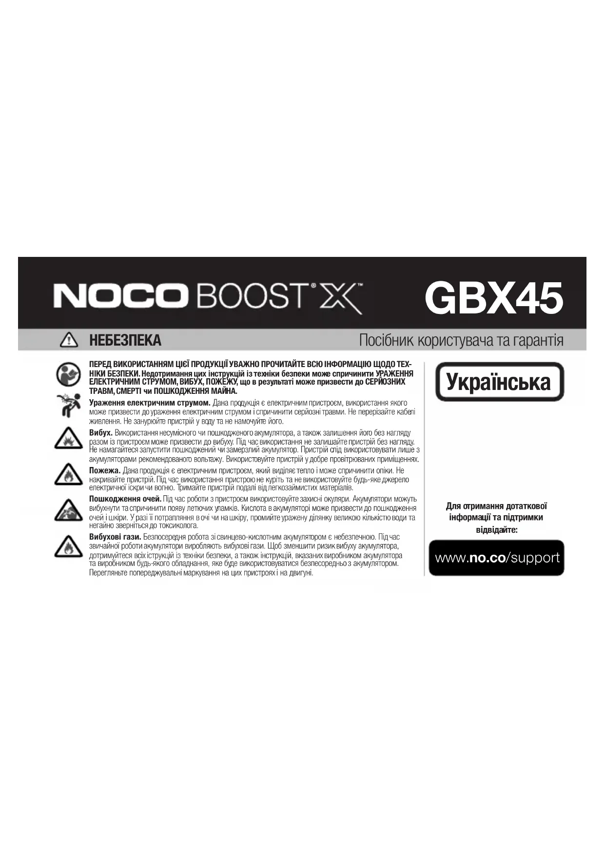 ПОСІБНИК КОРИСТУВАЧА Boost X GBX45 NOCO