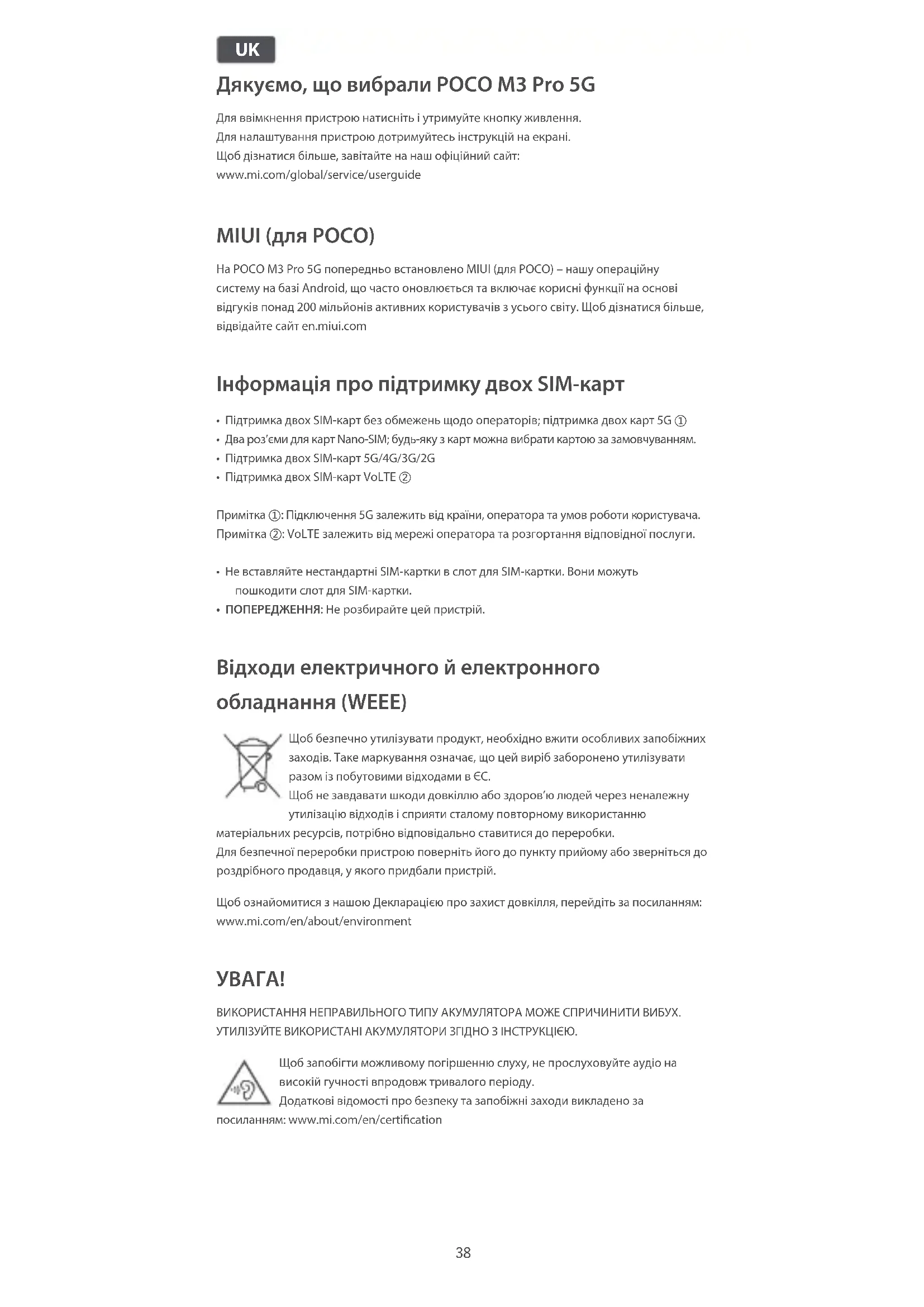ПОСІБНИК КОРИСТУВАЧА POCO M3 Pro Xiaomi