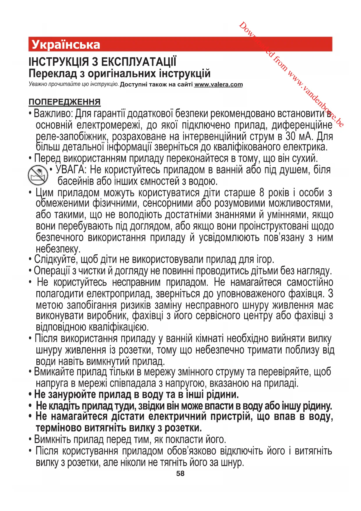 ПРОФЕСІЙНИЙ ФЕН ДЛЯ СУШІННЯ ВОЛОССЯ Downloaded from www.vandenborre.be60