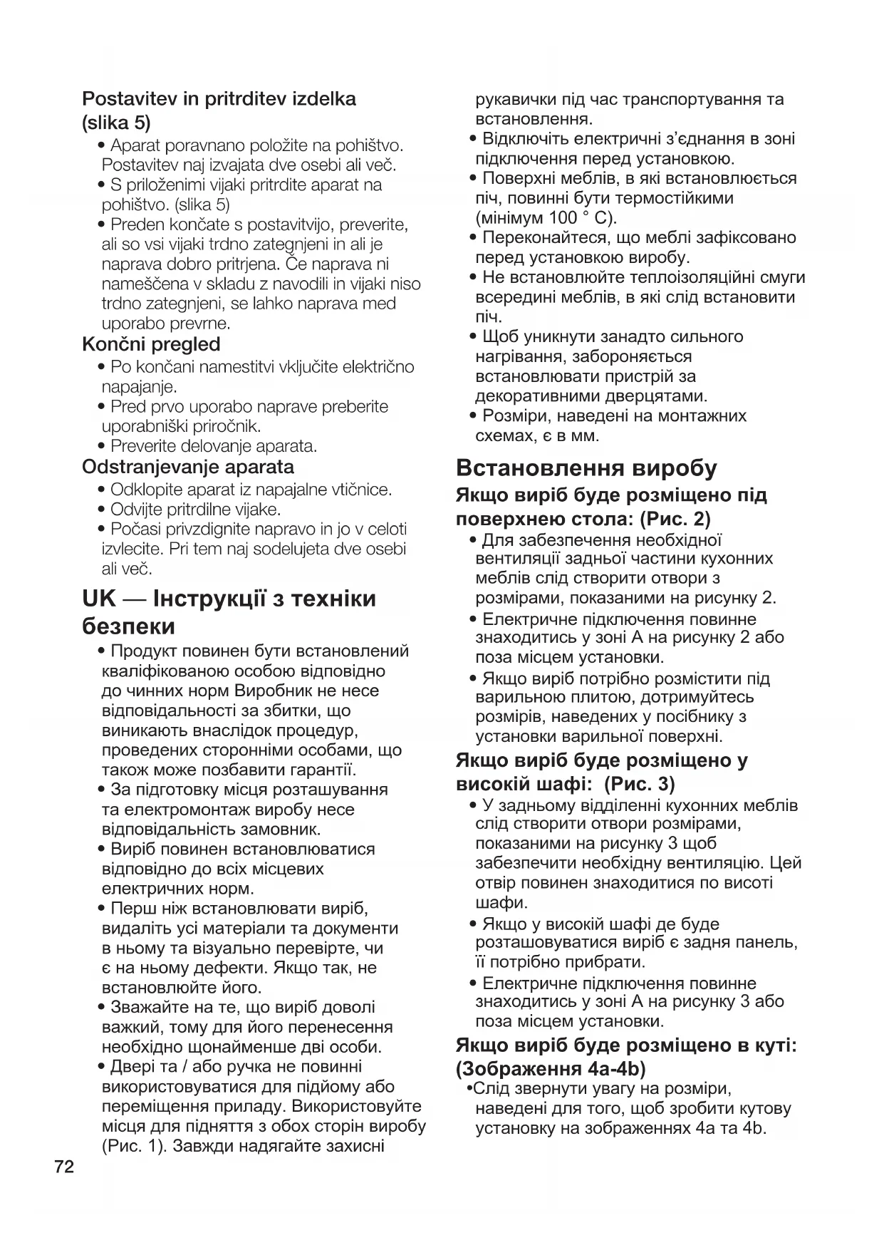 - Слід звернути увагу на розміри, наведені для того, щоб зробити кутову установку на зображеннях 4а та 4b.73 Підключення приладу до електропостачання