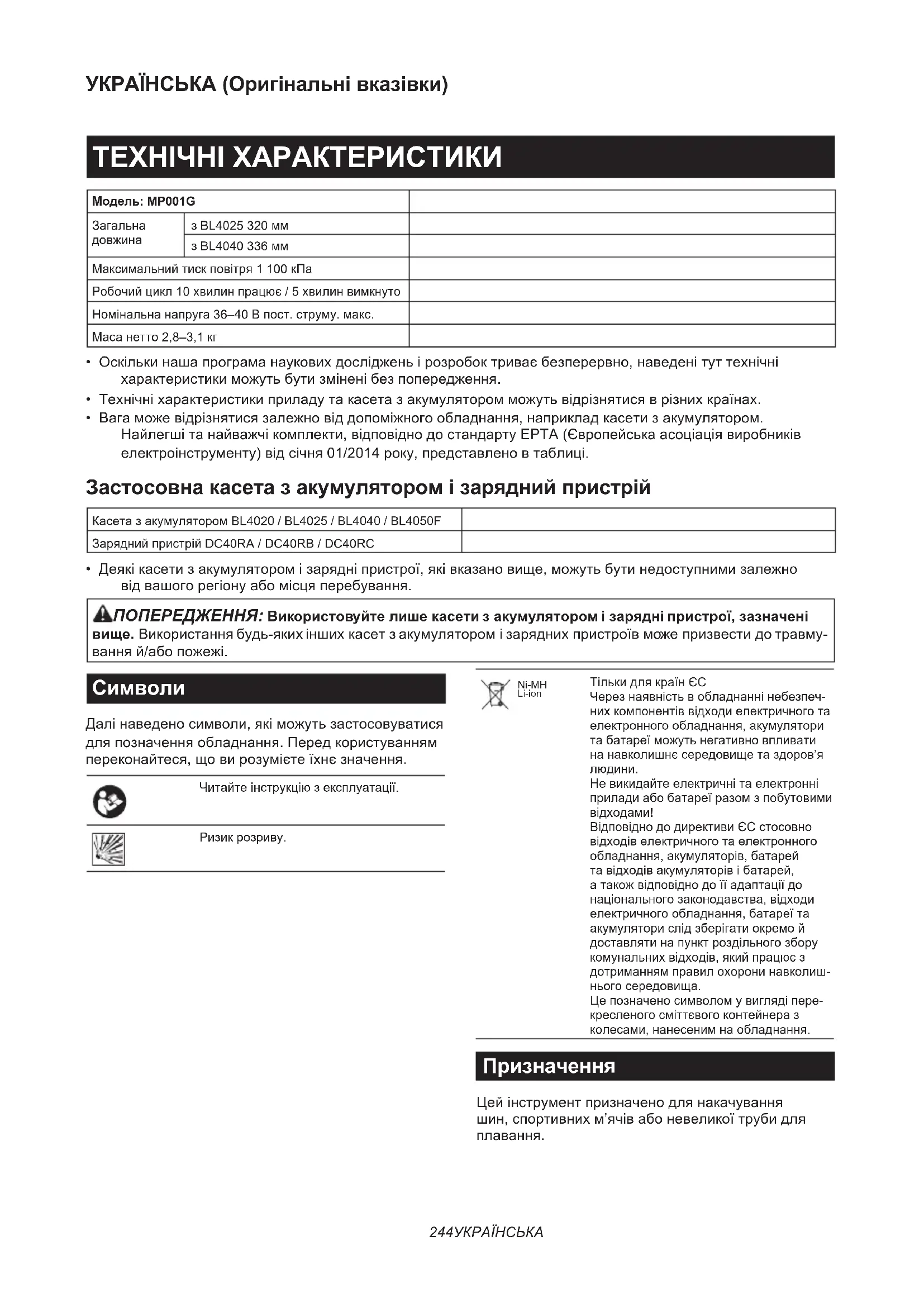 ПОСІБНИК КОРИСТУВАЧА MP001G MAKITA