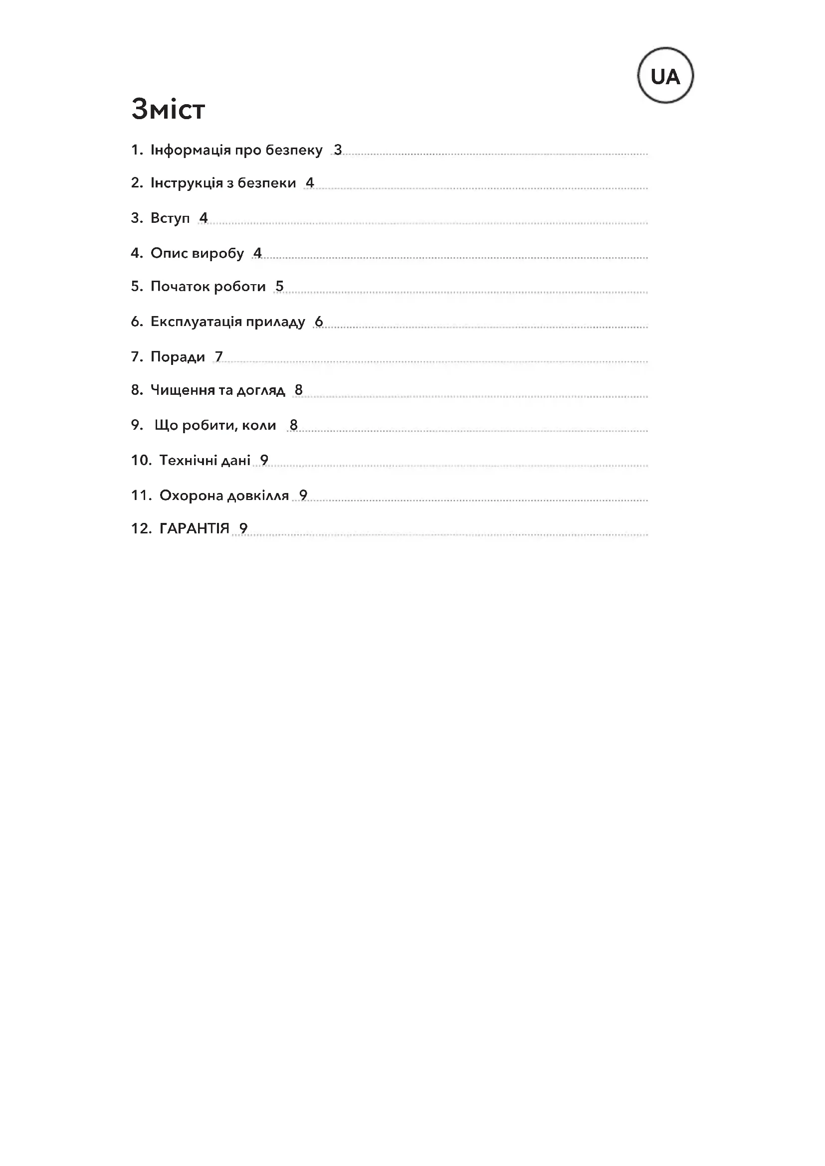 Для вашої безпеки та правильної роботи приладу уважно прочитайте цю інструкцію, перш ніж його встановлювати та експлуатувати. Завжди зберігайте цю інструкцію у комплекті з приладом, навіть якщо ви переїжджаєте або продаєте його. Користувачі повинні знати про всі особливості роботи приладу та правила техніки безпеки.