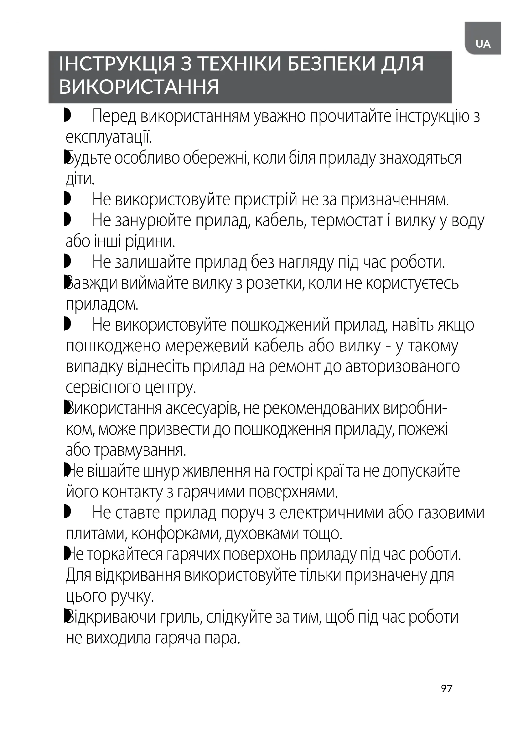 Відкриваючи гриль, слідкуйте за тим, щоб під час роботи не виходила гаряча пара.98