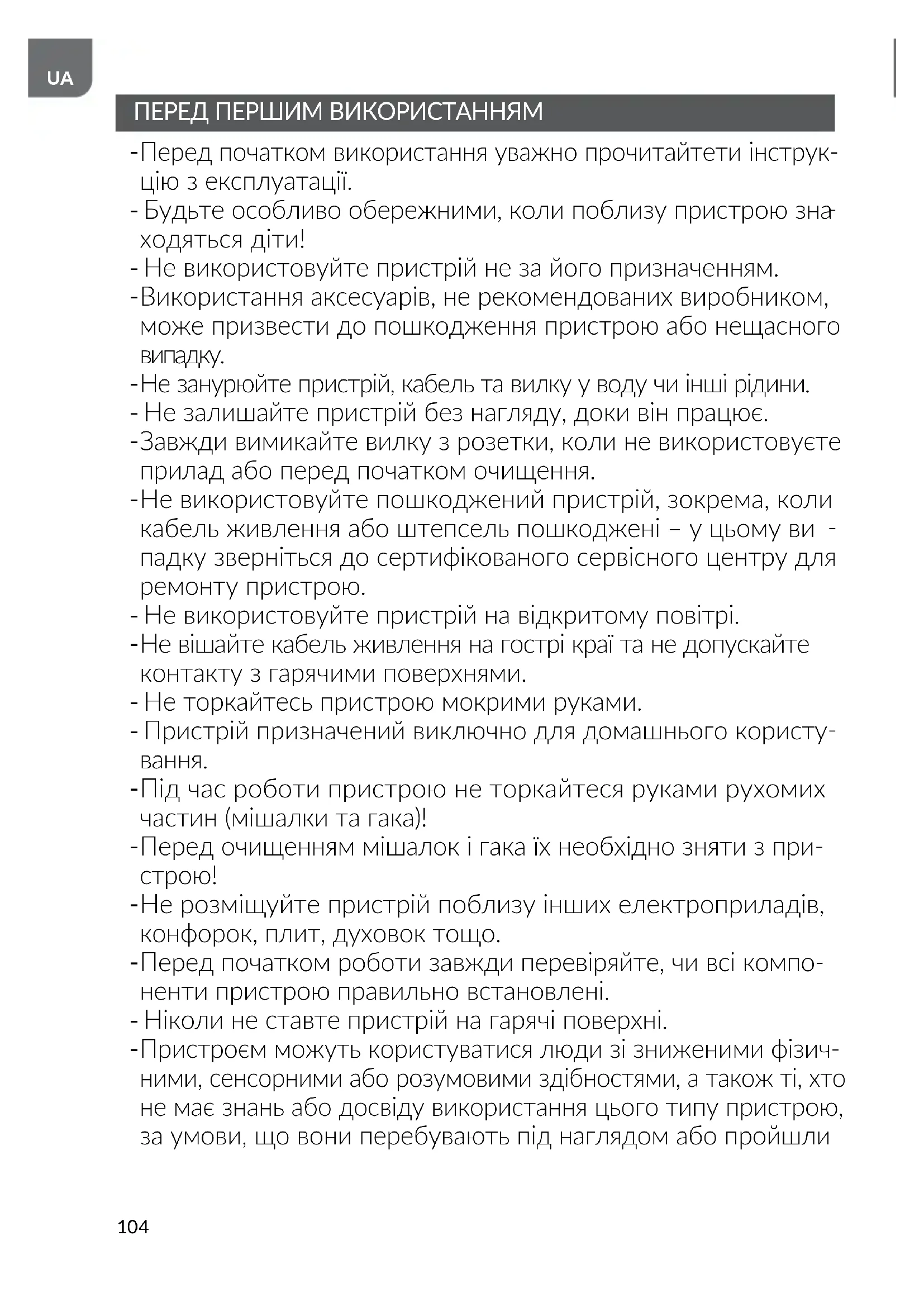 Перед початком використання уважно прочитайтети інструк- цію з експлуатації. - Будьте особливо обережними, коли поблизу пристрою зна