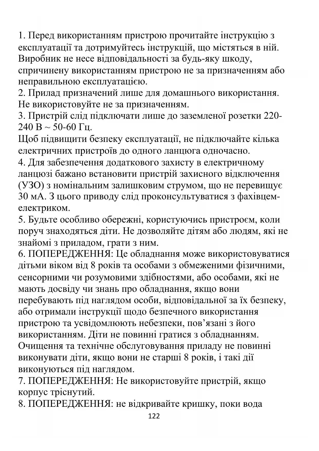 8. ПОПЕРЕДЖЕННЯ: не відкривайте кришку, поки вода123