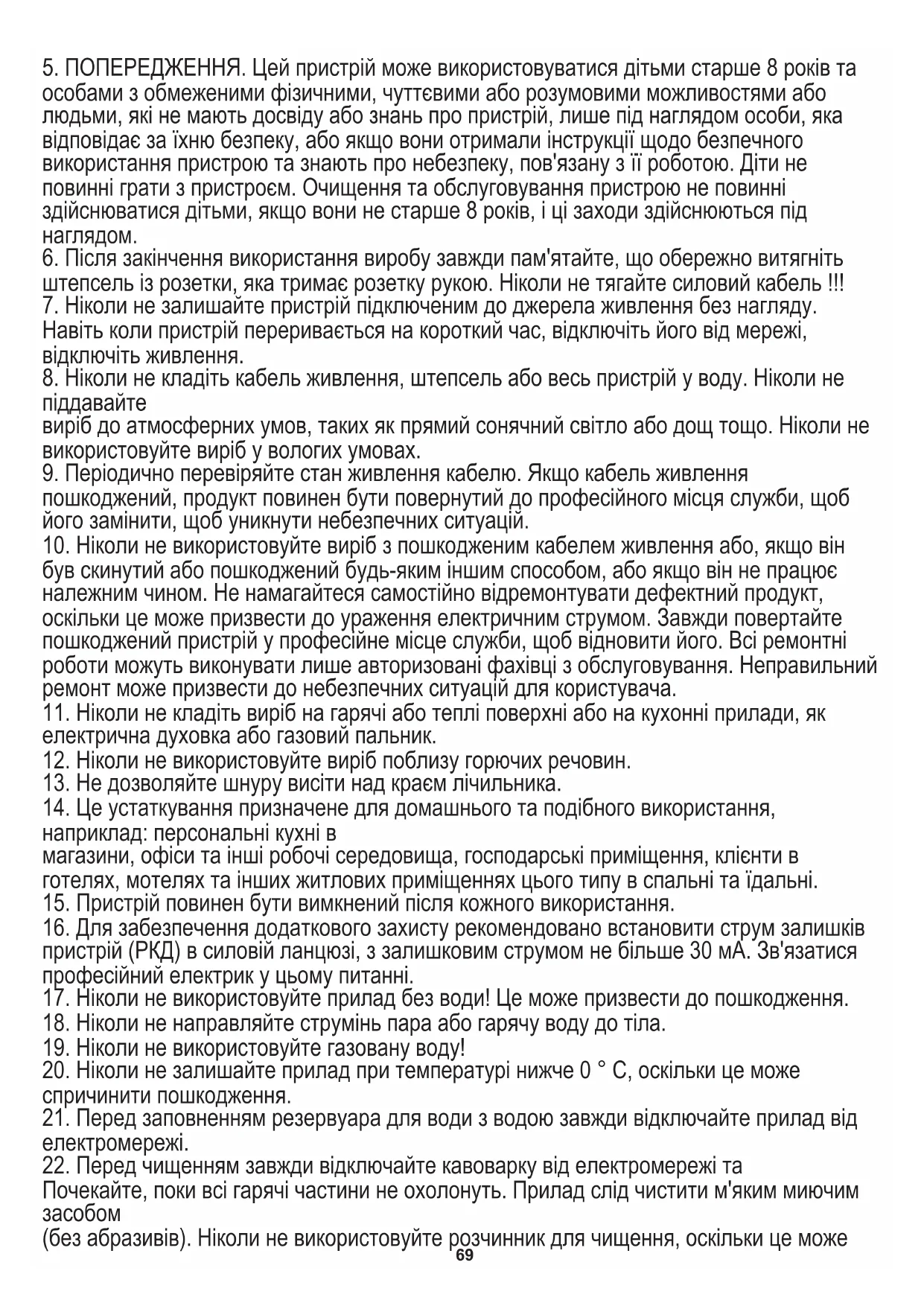 17. Ніколи не використовуйте прилад без води! Це може призвести до пошкодження.