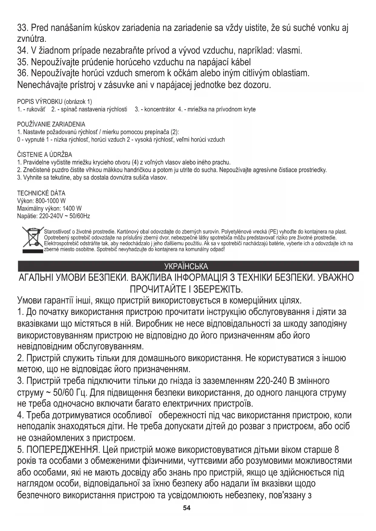 йоговикористанням. Діти не повинні гратися з пристроєм. Чищення та підтримка пристрою не повиннa здійснюватися дітьми, якщо вони не старше 8 років і підлягають