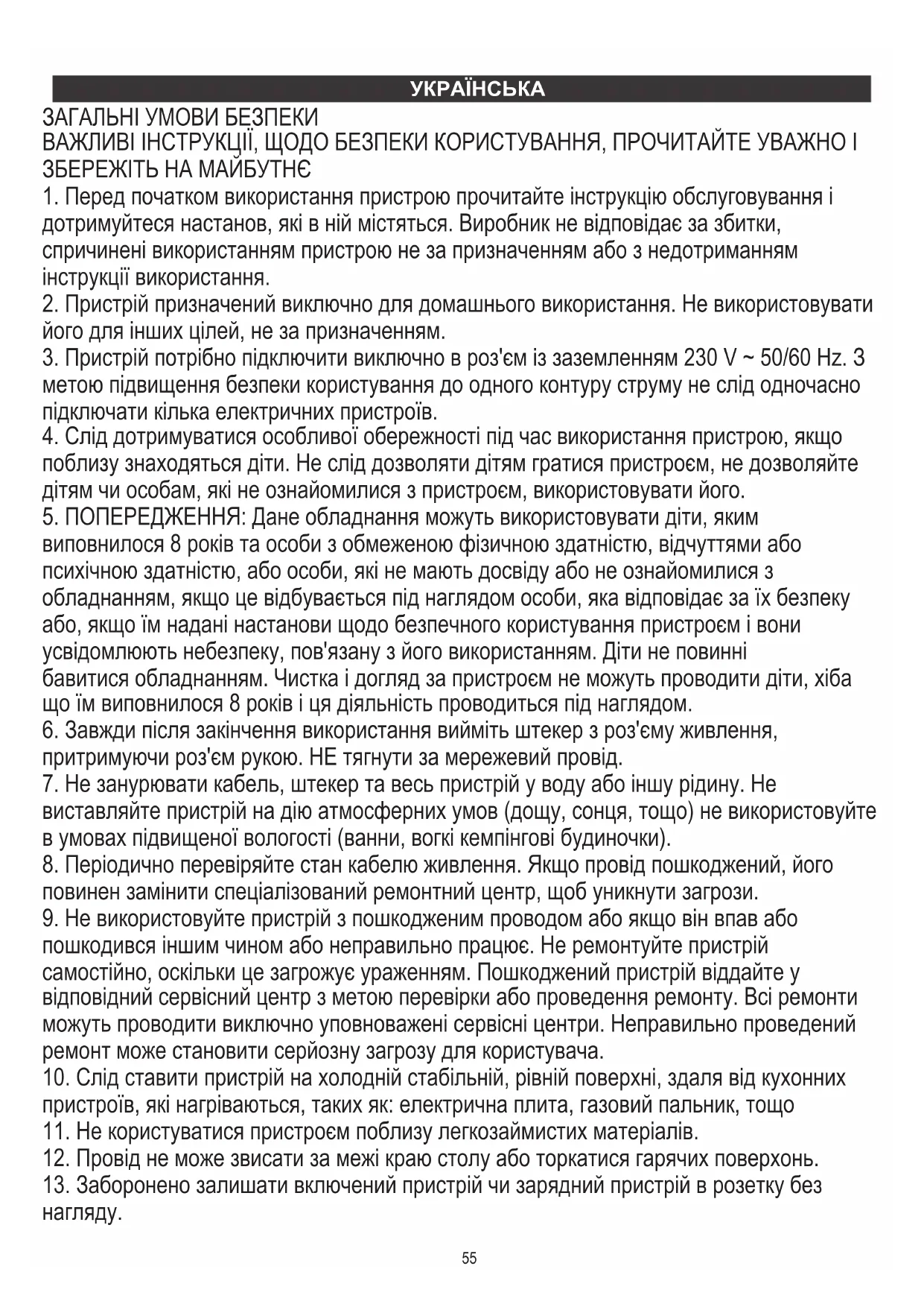 ЗАГАЛЬНІ УМОВИ БЕЗПЕКИ ВАЖЛИВІ ІНСТРУКЦІЇ, ЩОДО БЕЗПЕКИ КОРИСТУВАННЯ, ПРОЧИТАЙТЕ УВАЖНО І ЗБЕРЕЖІТЬ НА МАЙБУТНЄ