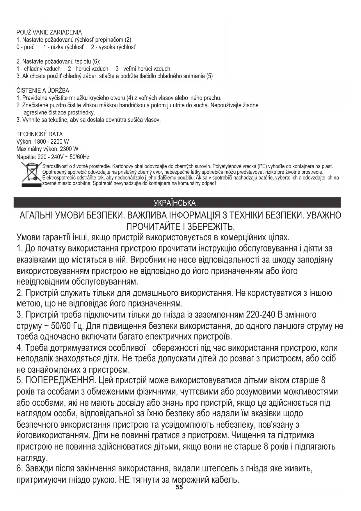Napätie: 220 - 240V ~ 50/60Hz АГАЛЬНІ УМОВИ БЕЗПЕКИ. ВАЖЛИВА ІНФОРМАЦІЯ З ТЕХНІКИ БЕЗПЕКИ. УВАЖНО ПРОЧИТАЙТЕ І ЗБЕРЕЖІТЬ. Умови гарантії інші, якщо пристрій використовується в комерційних цілях.