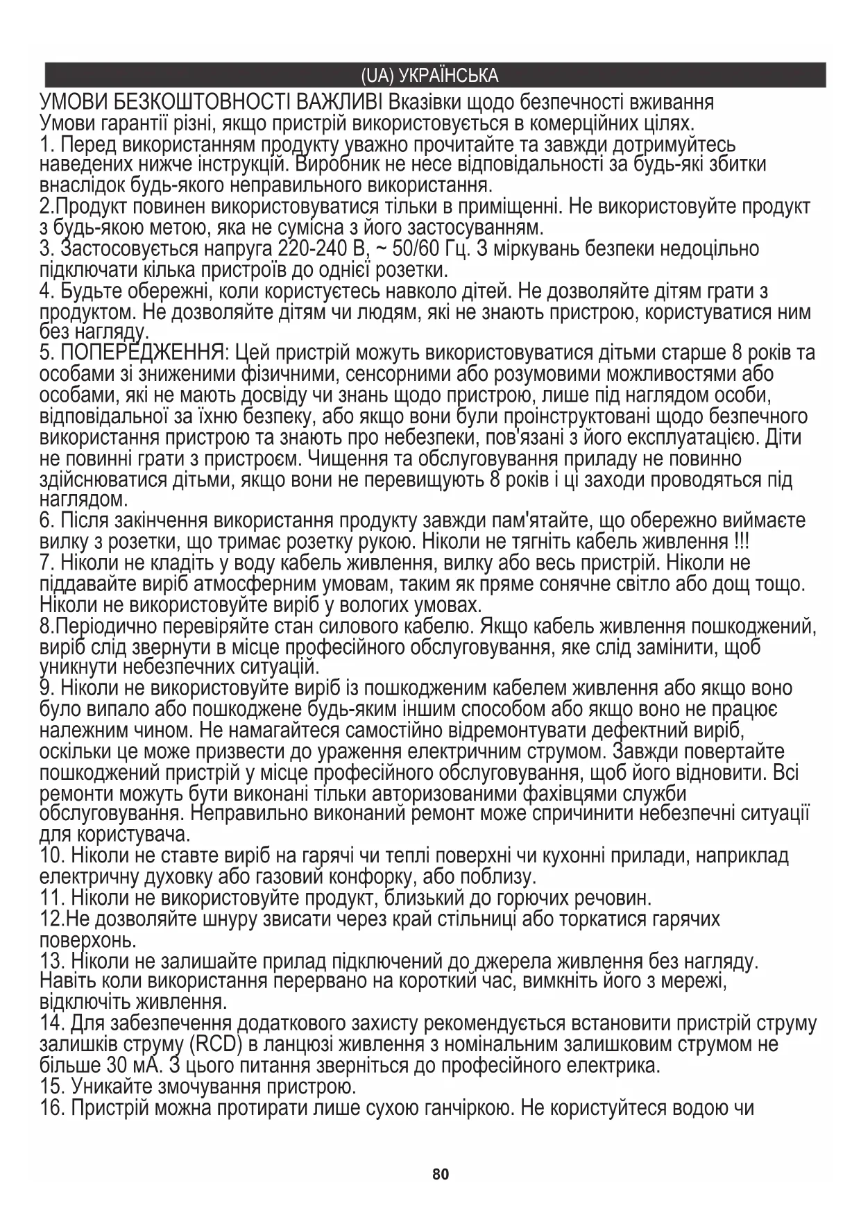 16. Пристрій можна протирати лише сухою ганчіркою. Не користуйтеся водою чи81