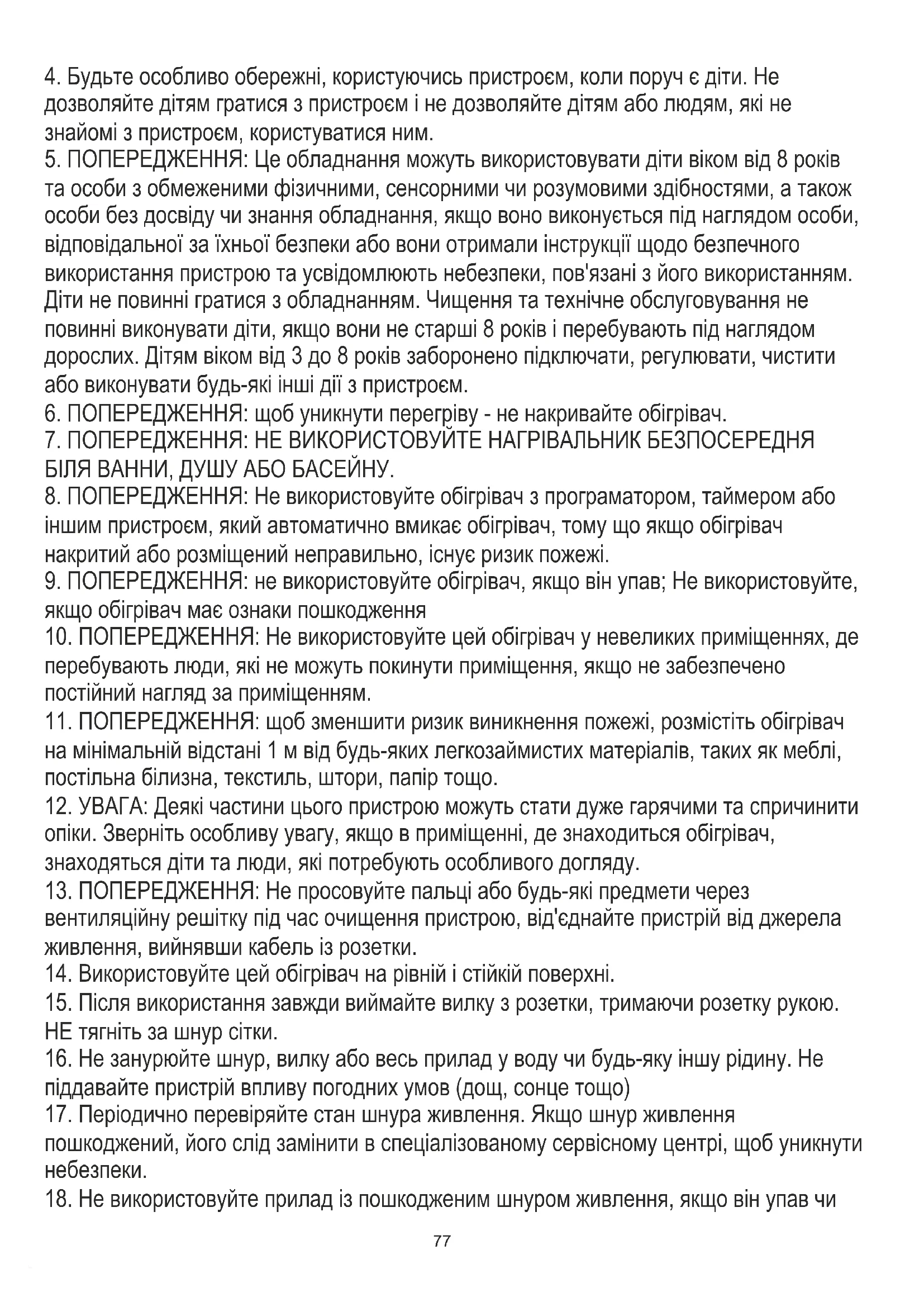 6. ПОПЕРЕДЖЕННЯ: щоб уникнути перегріву - не накривайте обігрівач.