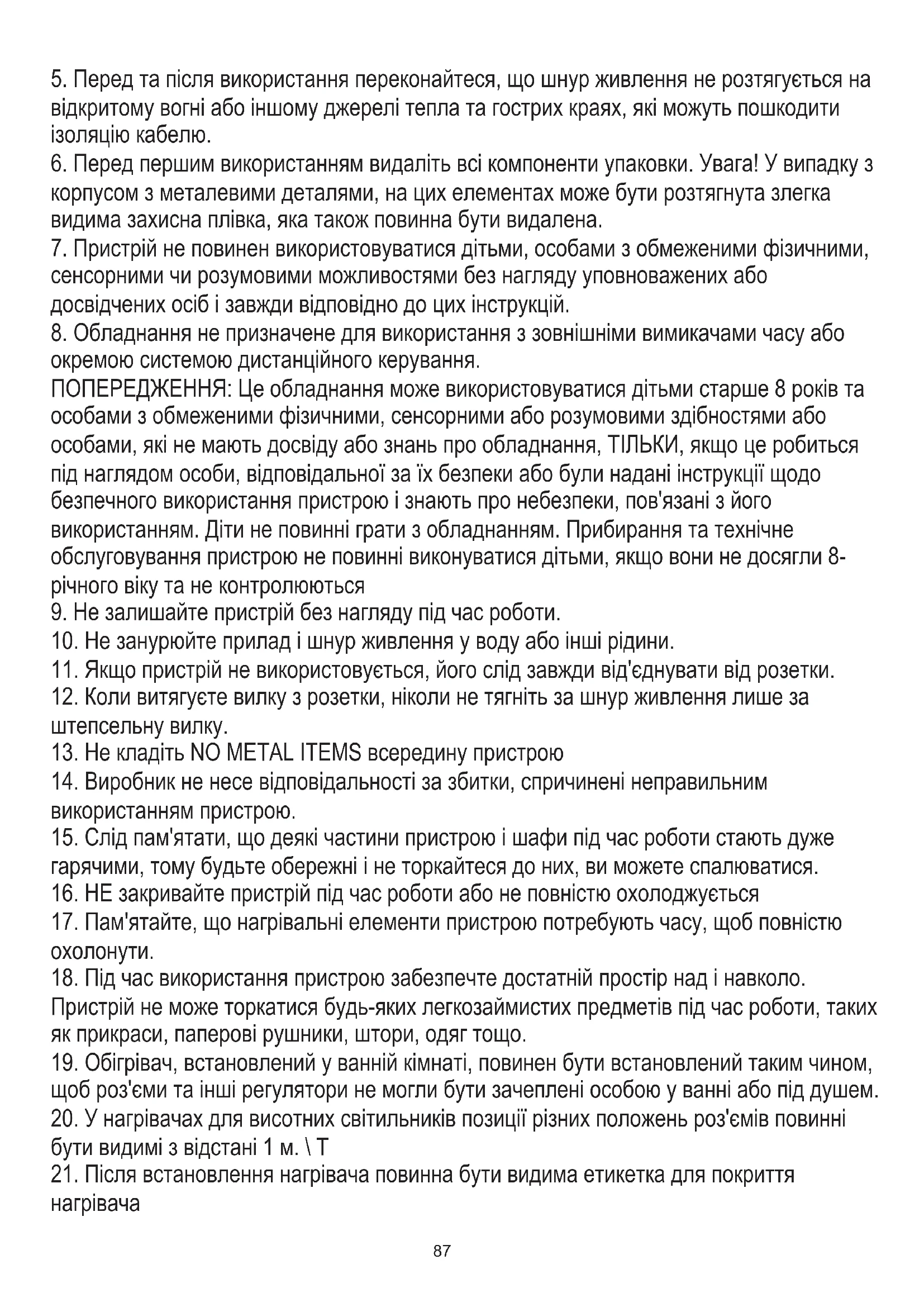 13. Не кладіть NO METAL ITEMS всередину пристрою