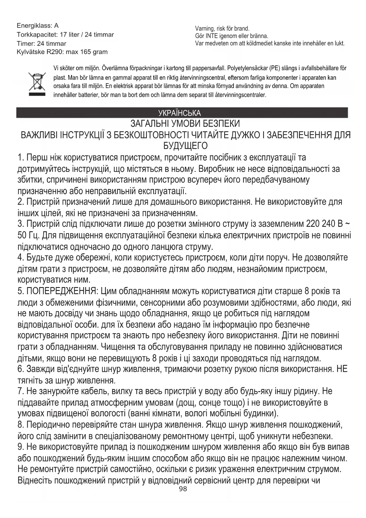 ЗАГАЛЬНІ УМОВИ БЕЗПЕКИ ВАЖЛИВІ ІНСТРУКЦІЇ З БЕЗКОШТОВНОСТІ ЧИТАЙТЕ ДУЖКО І ЗАБЕЗПЕЧЕННЯ ДЛЯ