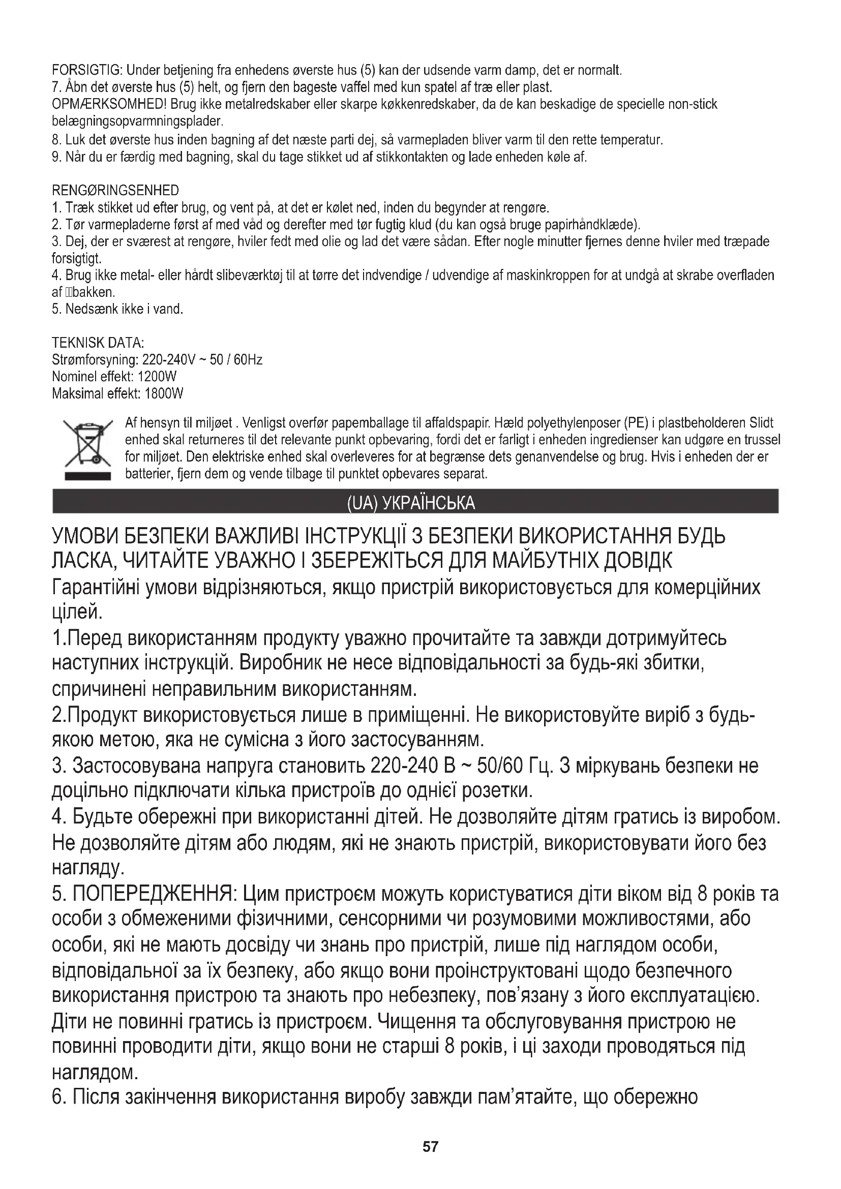 (UA) УКРАЇНСЬКА58 працює. Ніколи не торкайтесь гарячих поверхонь приладу.