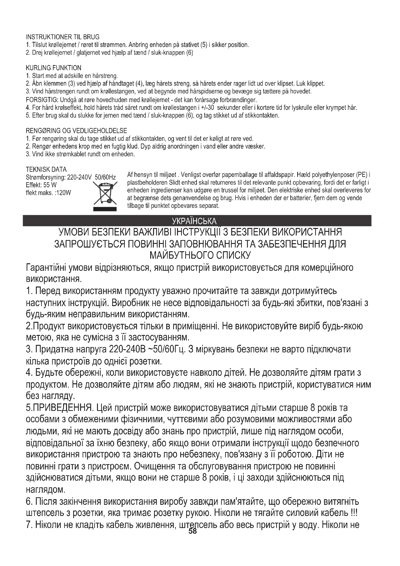 1. Підключіть керлінг / випрямляч до джерела живлення. Поставте пристрій на підставку (5) у безпечному положенні.