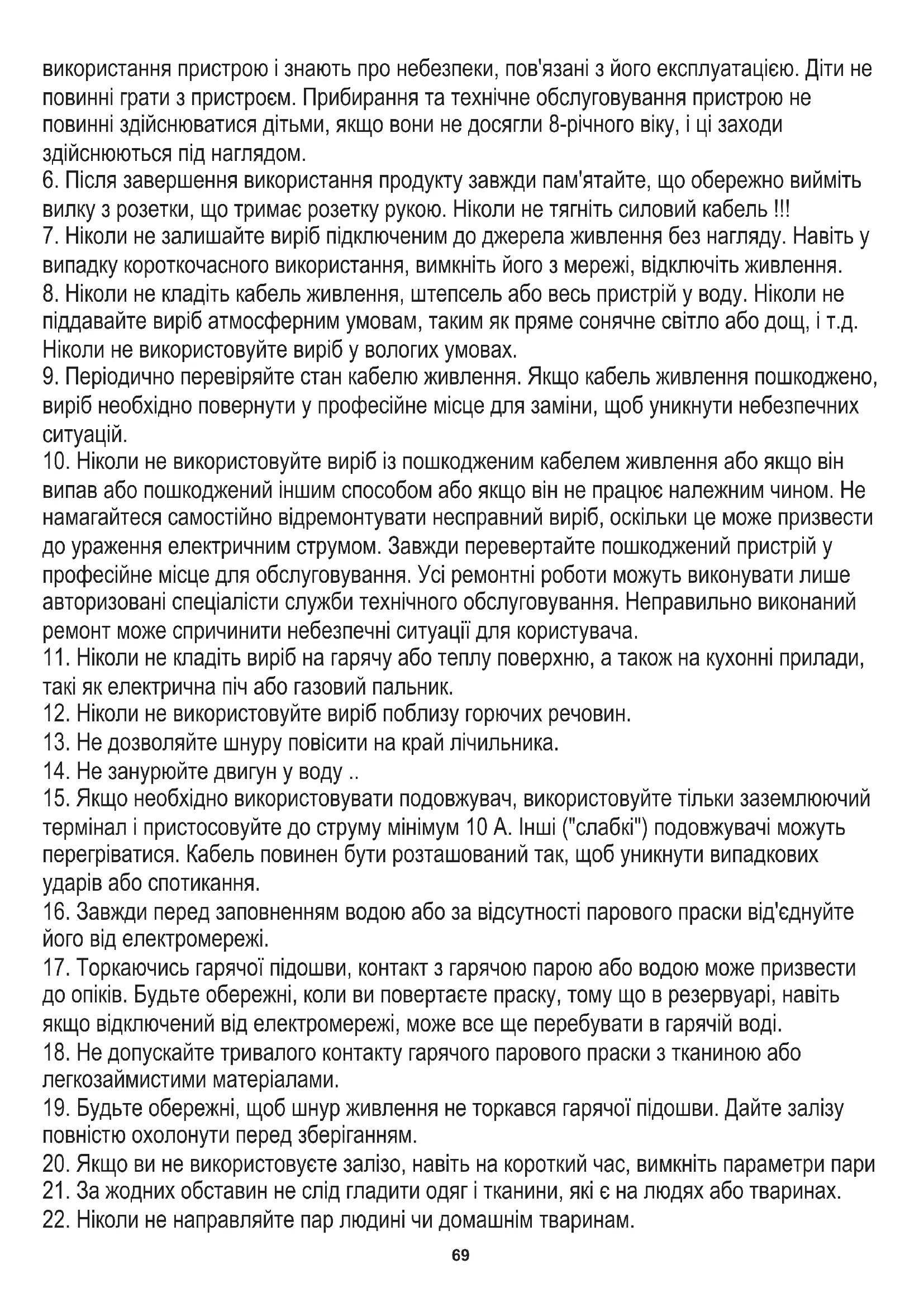 22. Ніколи не направляйте пар людині чи домашнім тваринам.