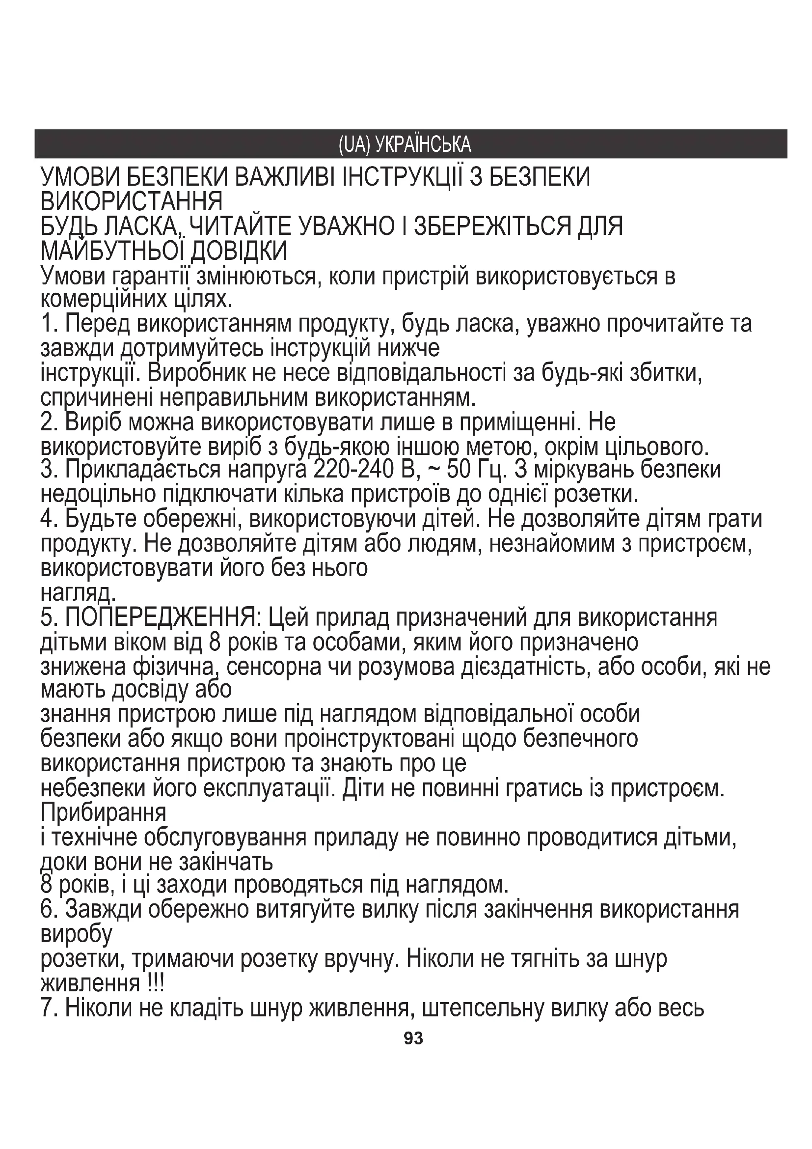 завжди дотримуйтесь інструкцій нижче БУДЬ ЛАСКА, ЧИТАЙТЕ УВАЖНО І ЗБЕРЕЖІТЬСЯ ДЛЯ МАЙБУТНЬОЇ ДОВІДКИ Умови гарантії змінюються, коли пристрій використовується в комерційних цілях.