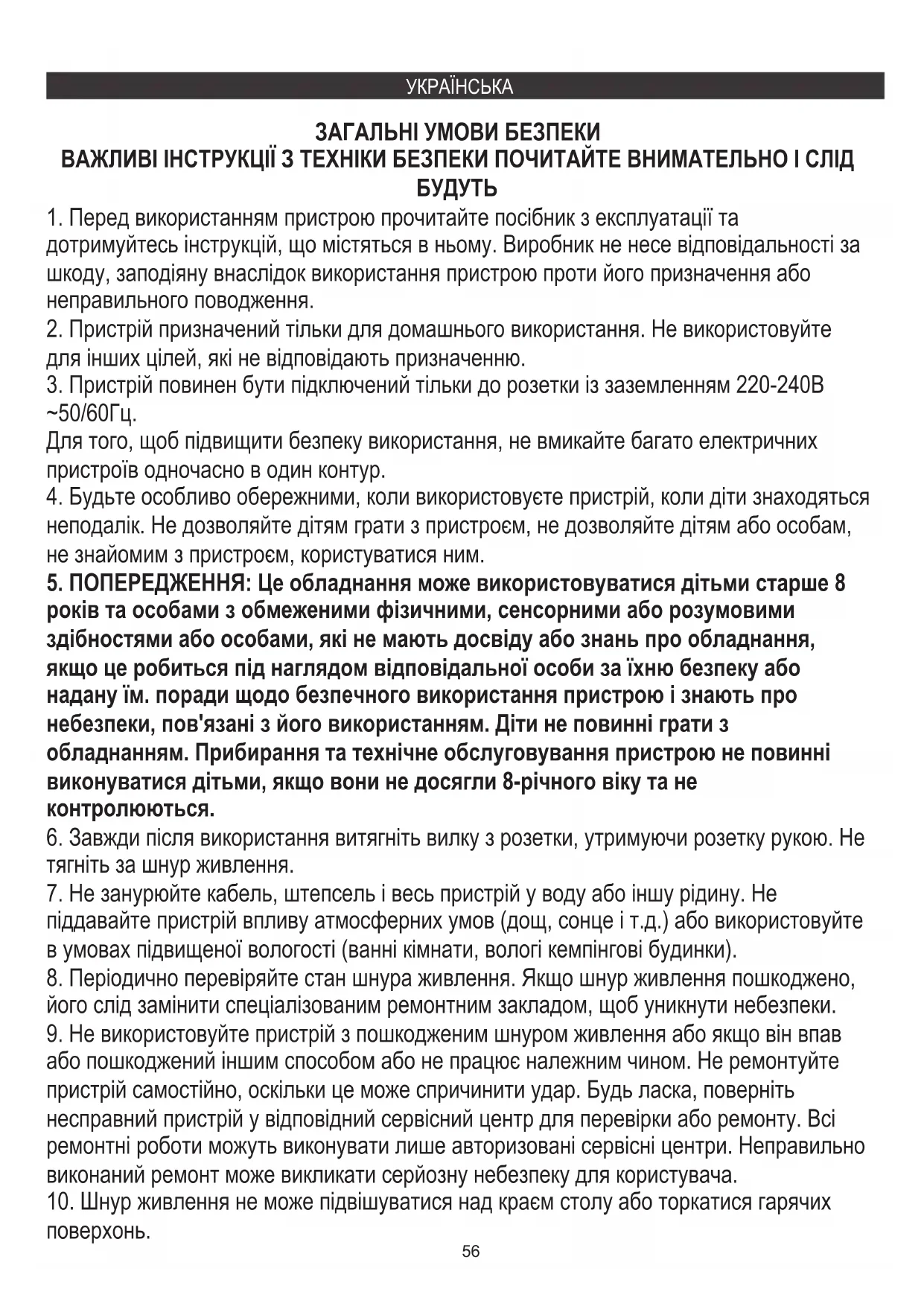 5. ПОПЕРЕДЖЕННЯ: Це обладнання може використовуватися дітьми старше 8