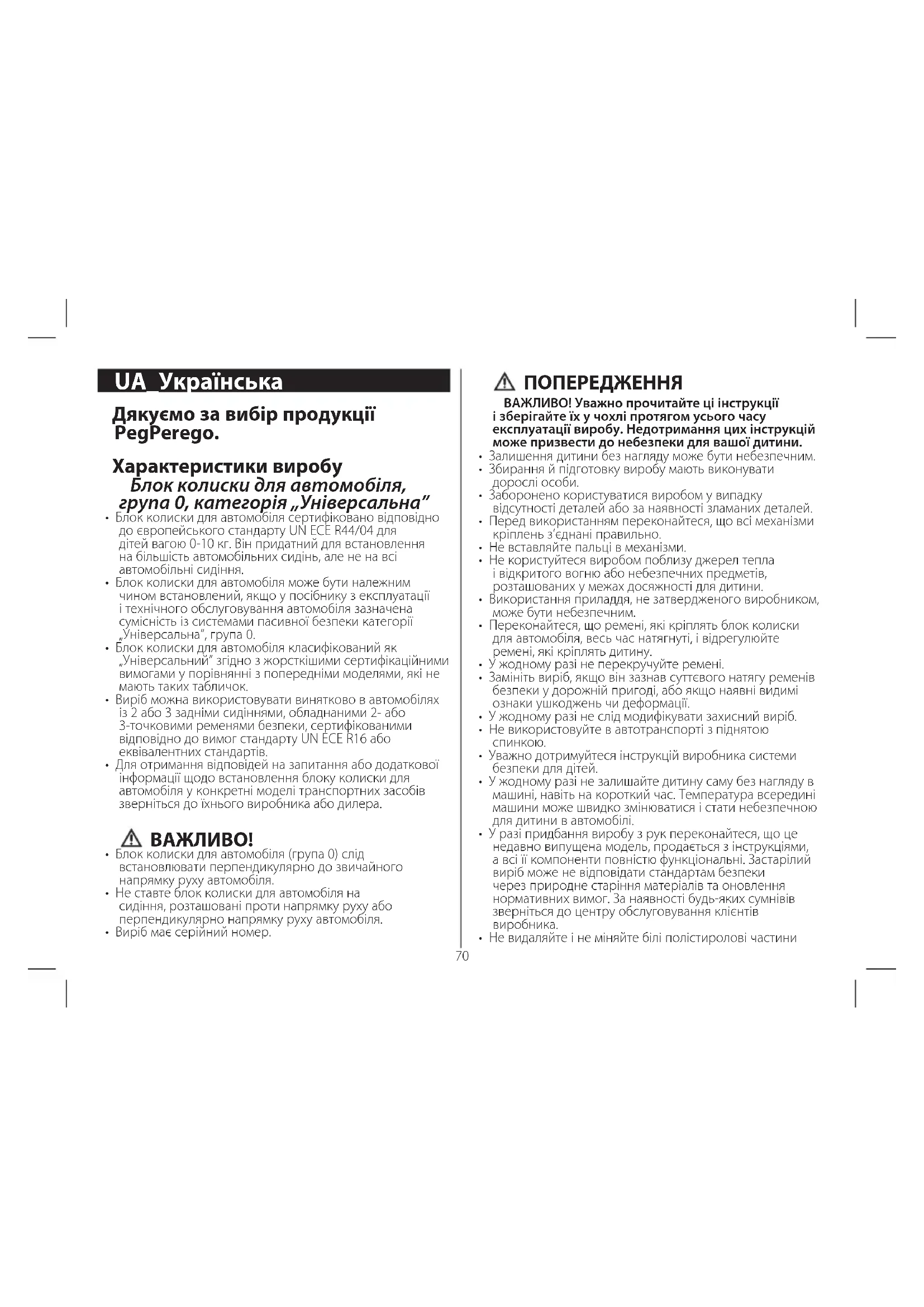- Виріб має серійний номер. UA_Українська ПОПЕРЕДЖЕННЯ ВАЖЛИВО! Уважно прочитайте ці інструкції і зберігайте їх у чохлі протягом усього часу експлуатації виробу. Недотримання цих інструкцій може призвести до небезпеки для вашої дитини.