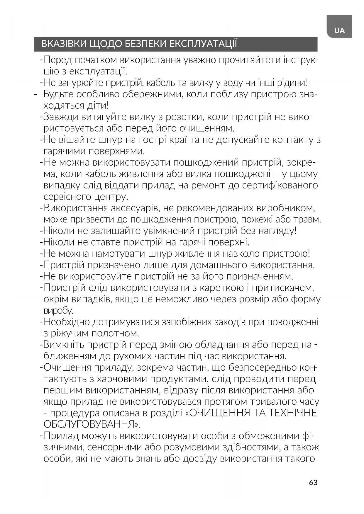 Прилад можуть використовувати особи з обмеженими фі- зичними, сенсорними або розумовими здібностями, а також особи, які не мають знань або досвіду використання такого64
