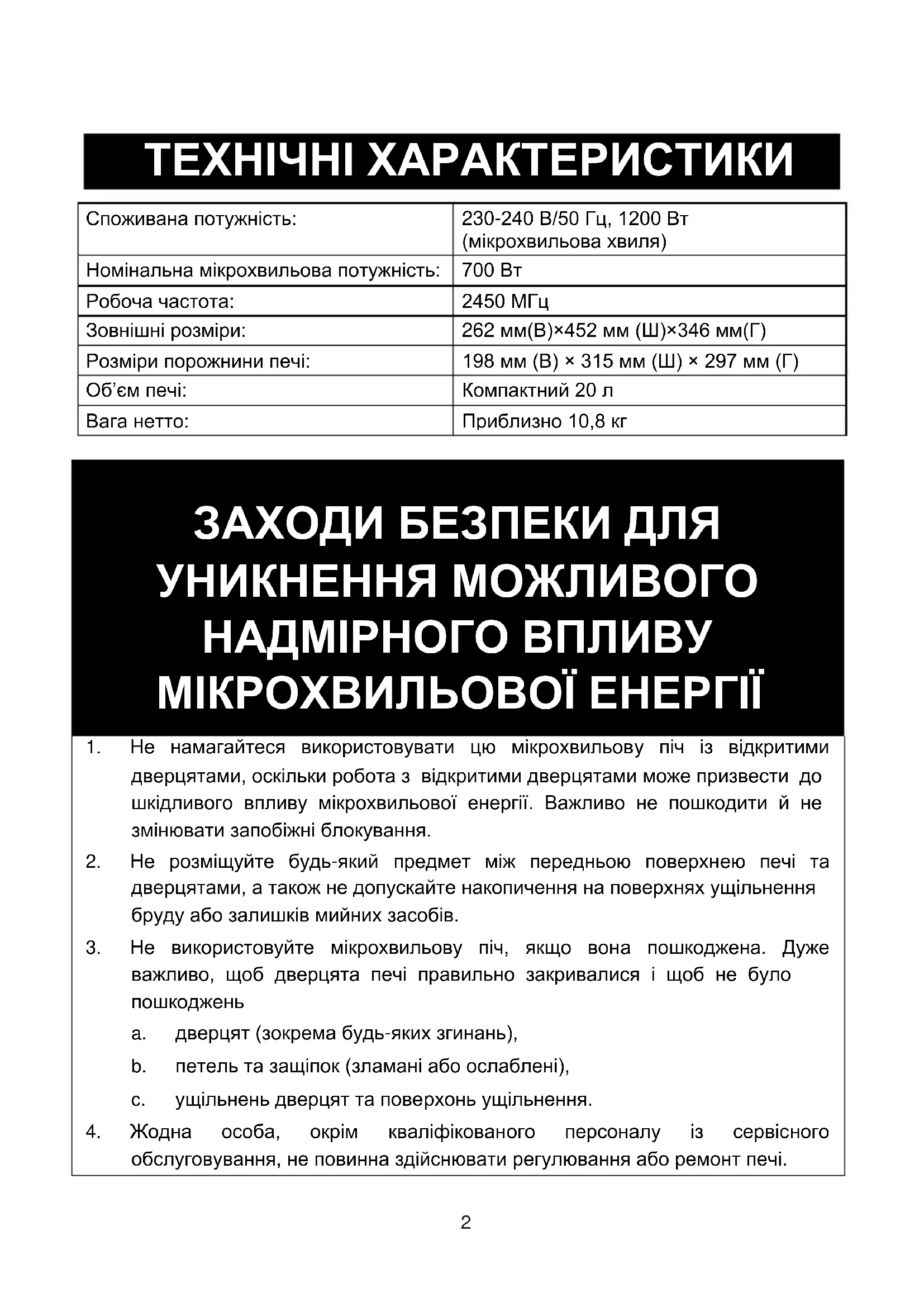 - ЗАХОДИ БЕЗПЕКИ ДЛЯ УНИКНЕННЯ МОЖЛИВОГО НАДМІРНОГО ВПЛИВУ МІКРОХВИЛЬОВОЇ ЕНЕРГІЇ p. 2