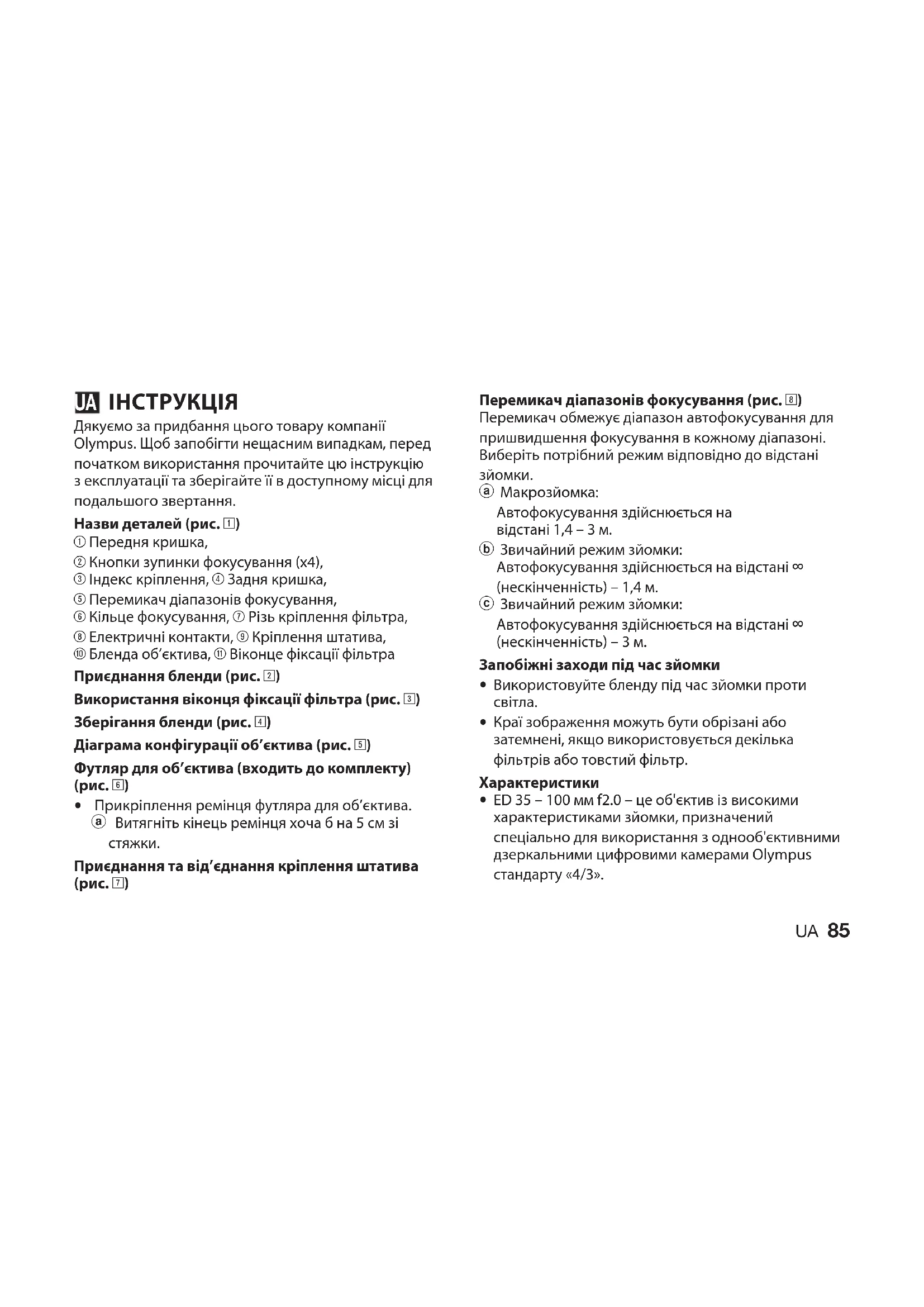 ПОСІБНИК КОРИСТУВАЧА ZUIKO DIGITAL ED 35100mm 1:2.0 OLYMPUS