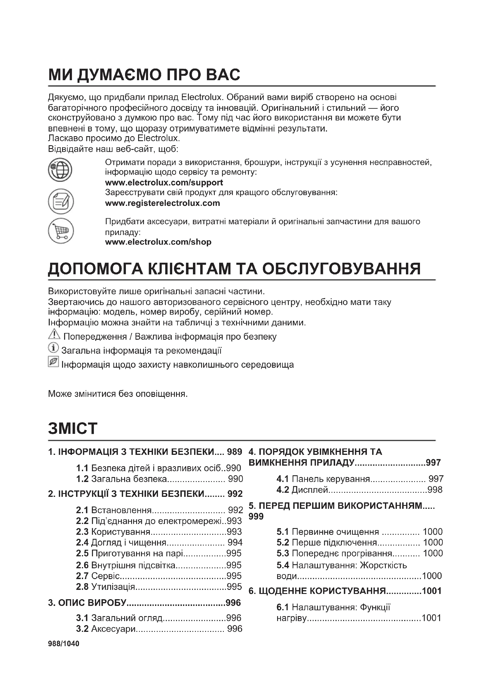 2.4 Догляд і чищення....................... 994