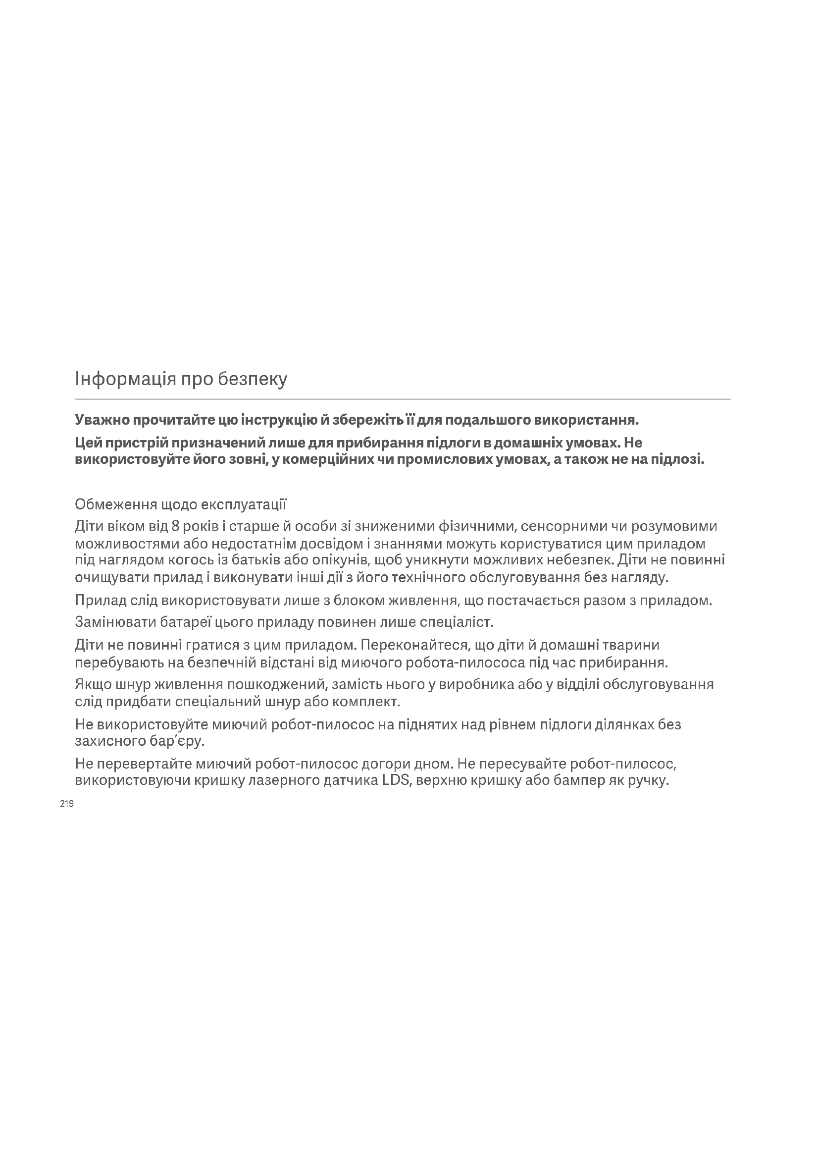 | Мюочи рюBOT-пilococ He BmkaeTbCS | Рівень 3аряду 6batapei може 6bytп занаду НИЗБКIM. 3арядіть рюBOT-пilococ пered ВИКористаням. Temпература habколшього сeredовида може 6bytп наду НИЗБКА (нИЖUE 0 °C)abo 3abincoka (понад 40 °C). ВИКористовида рюBOT-пilococ пишие за temпературri 0-40 °C. |