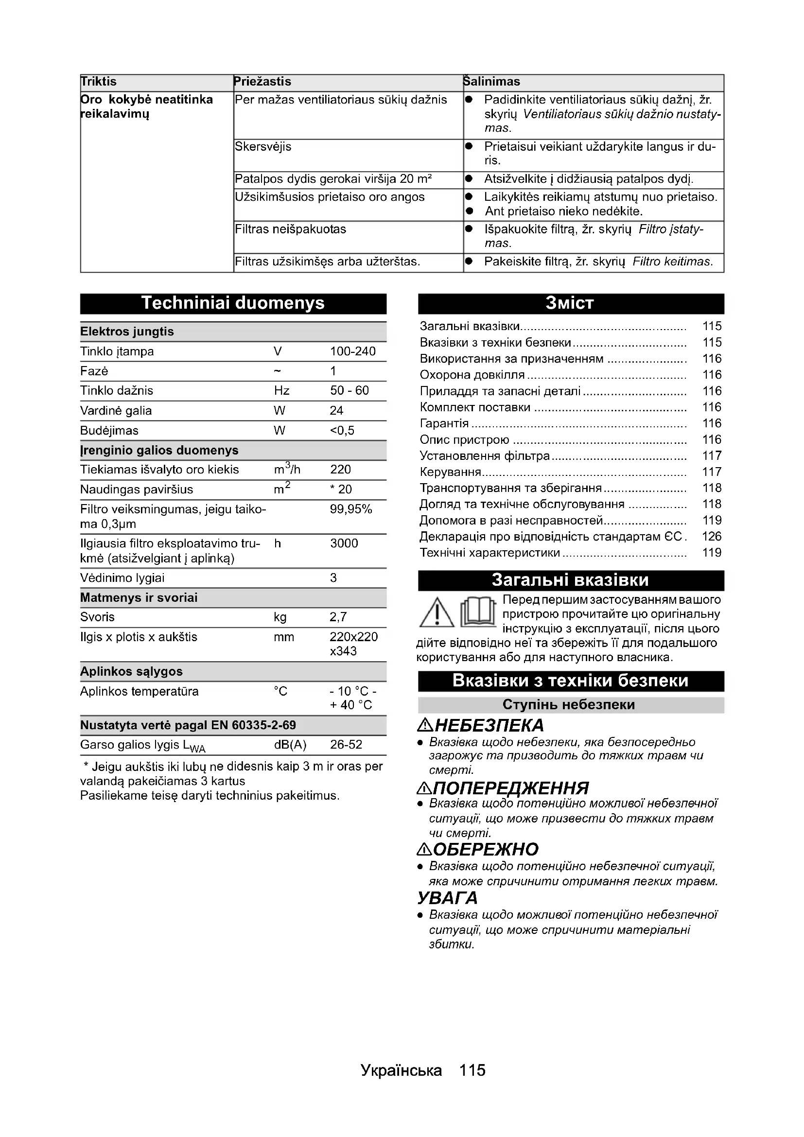 - dB(A) 26-52 Загальні вказівки p. 115