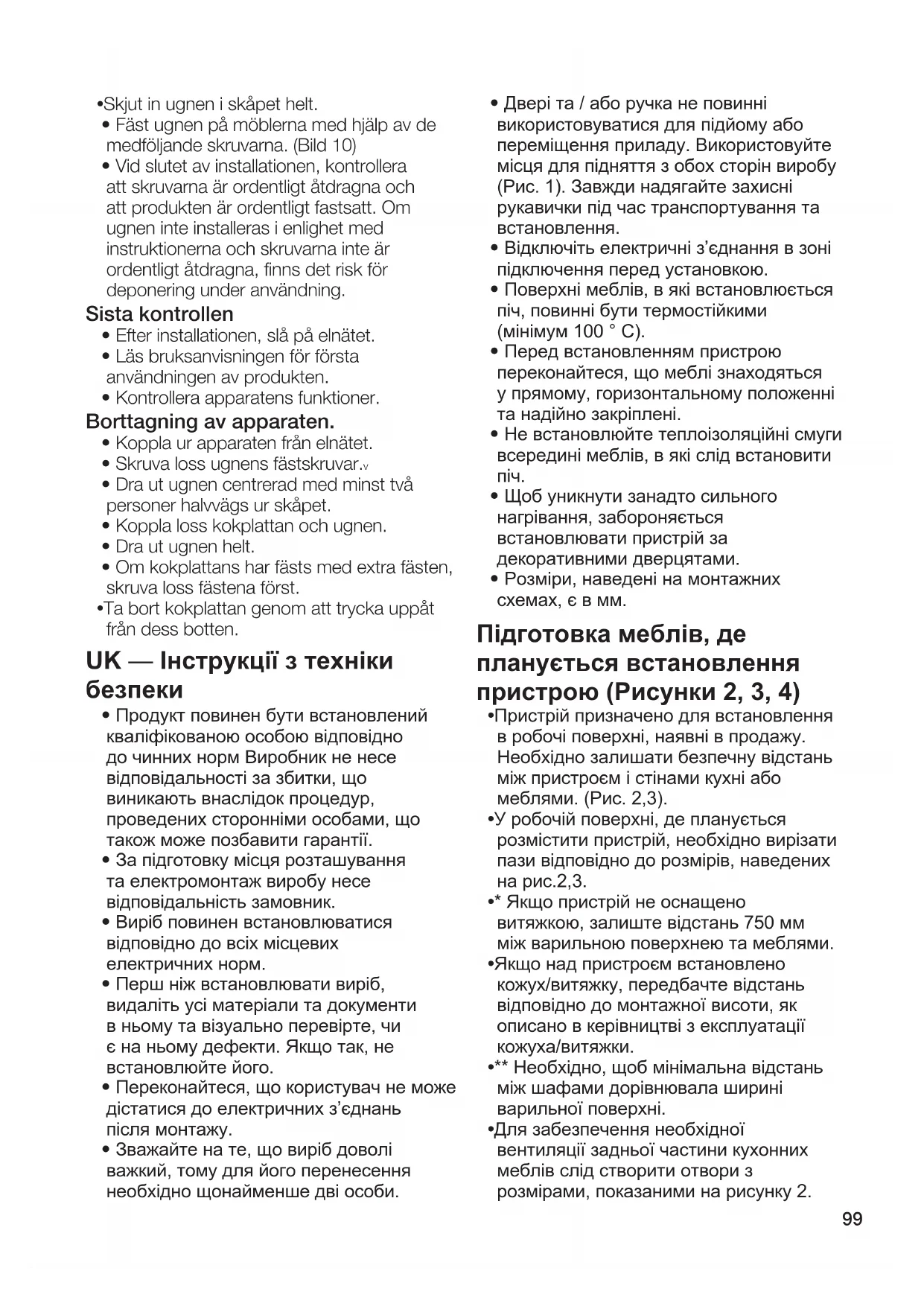 - В кінці монтажу переконайтесь, що гвинти правильно затягнуті та виріб надійно зафіксовано. Якщо духовку не встановлено відповідно до інструкцій, а гвинти не затягнуті належним чином, існує небезпека перекидання під час використання. Остаточна перевірка
