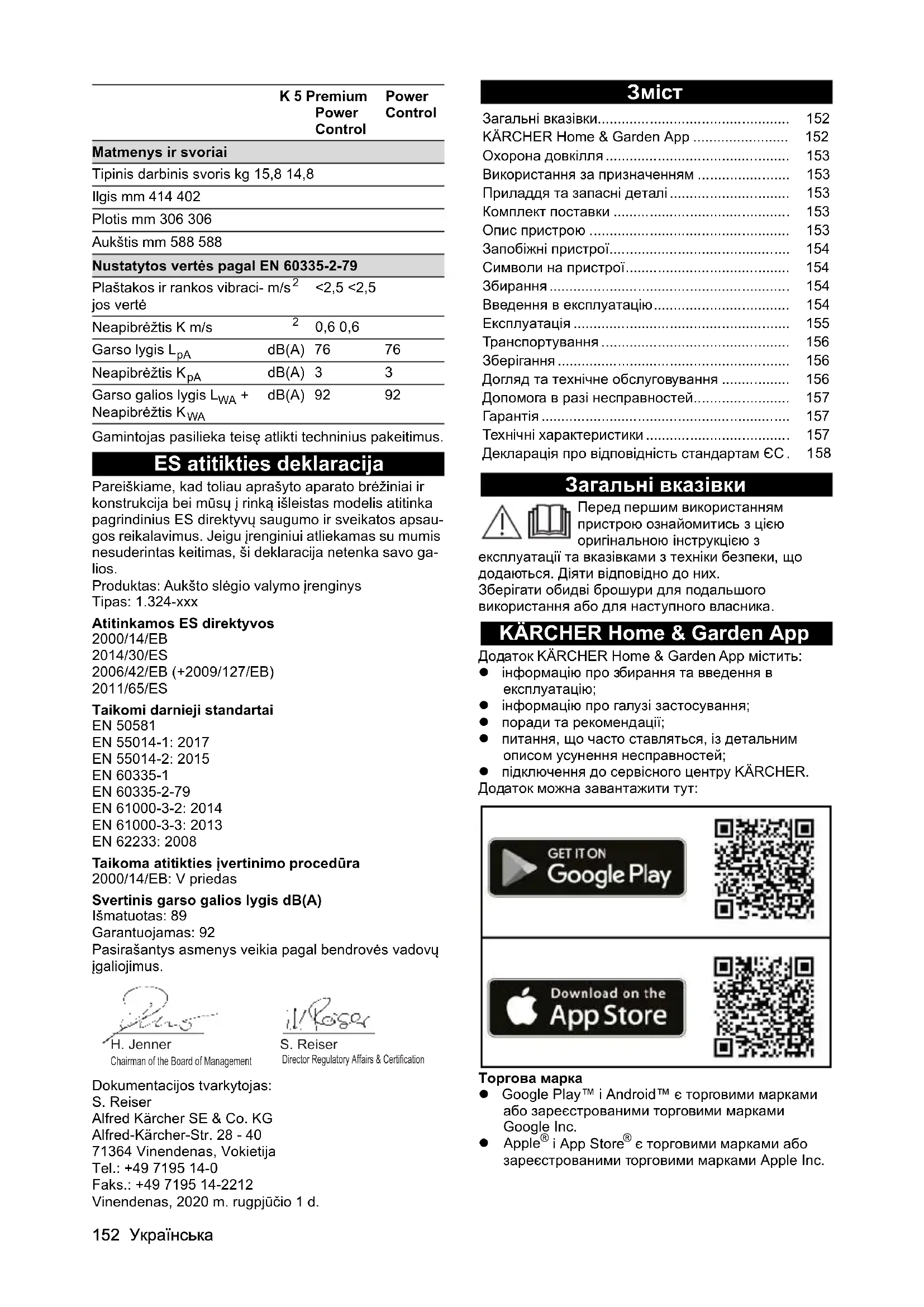 - dB(A) 92 92 K 5 Premium Power Control Power Control Chairman of the Board of Management Director Regulatory Affairs & Certification H. Jenner S. Reiser Загальні вказівки p. 152