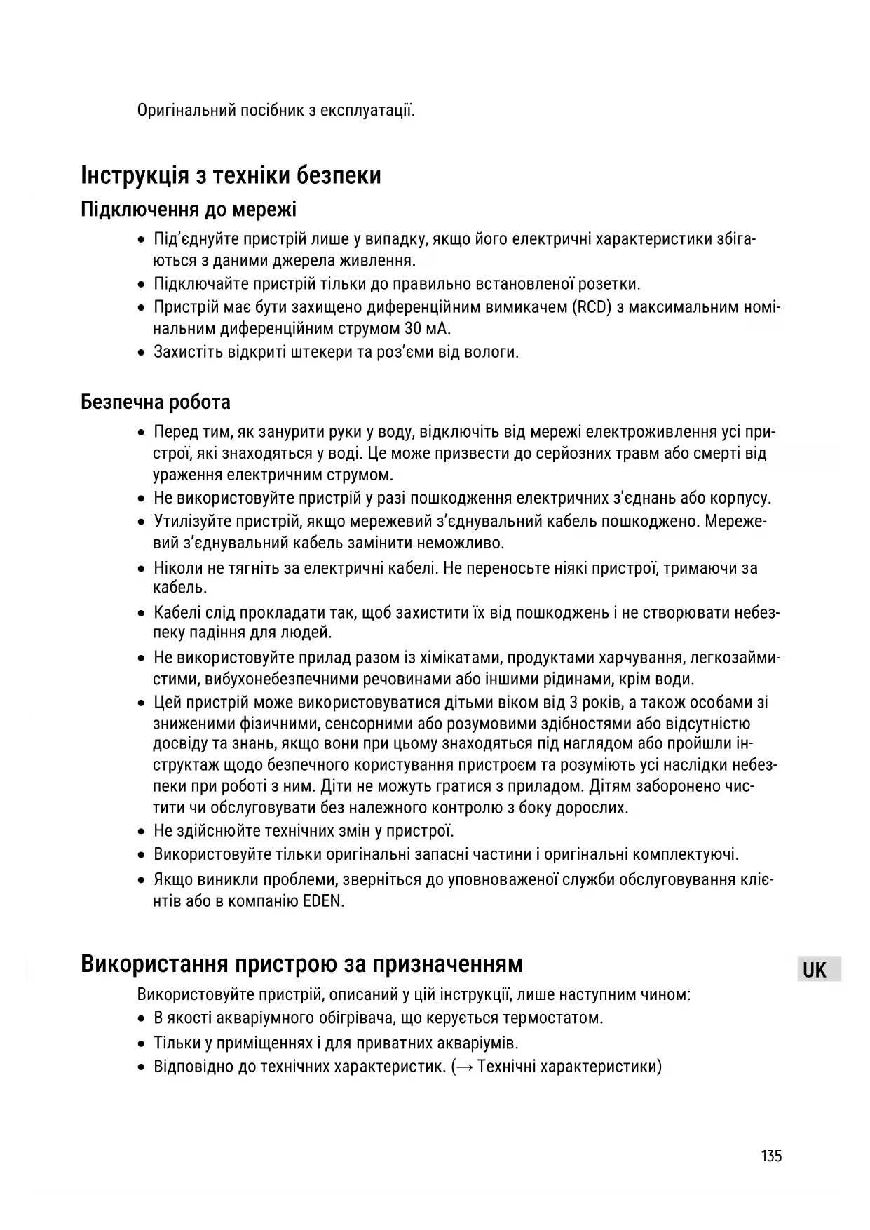 - Якщо виникли проблеми, зверніться до уповноваженої служби обслуговування кліє- нтів або в компанію EDEN. Використання пристрою за призначенням Використовуйте пристрій, описаний у цій інструкції, лише наступним чином: