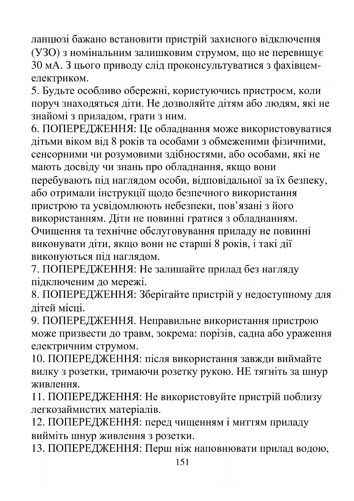 13. ПОПЕРЕДЖЕННЯ: Перш ніж наповнювати прилад водою,152