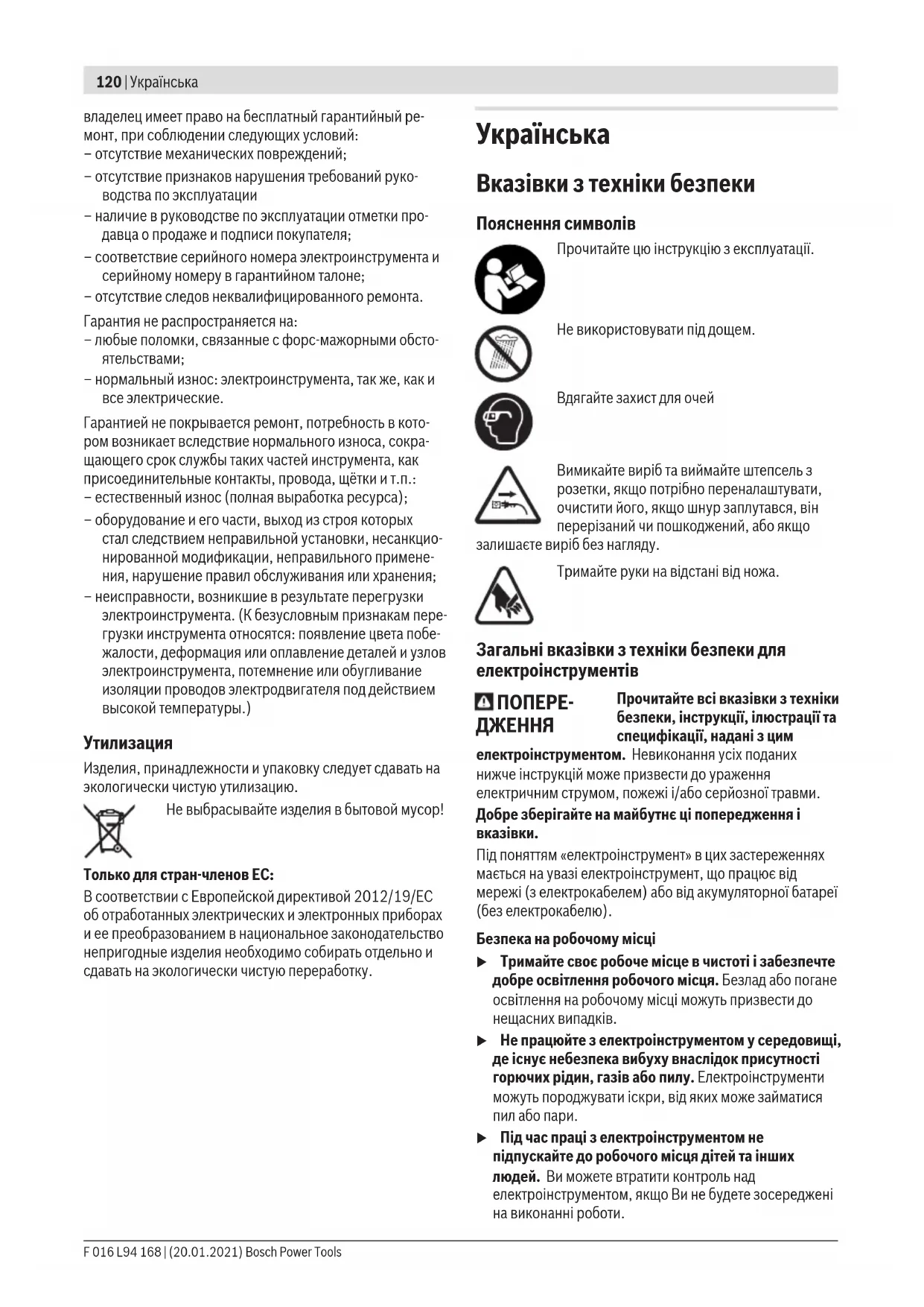 Bosch Power Tools F 016 L94 168 | (20.01.2021)124 | Українська Символ Значення