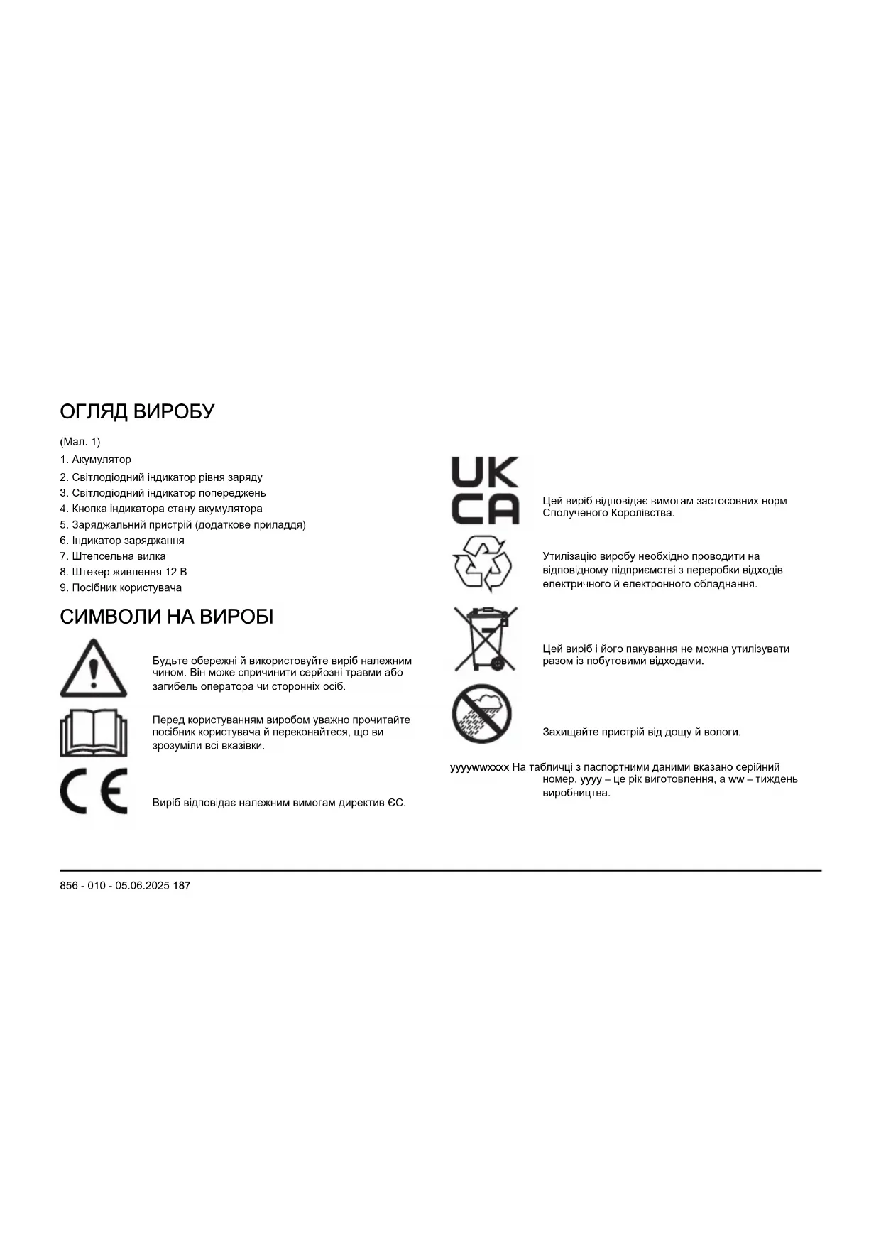 856 - 010 - 05.06.2025 187Зверніть увагу: Інші позначення/бирки на виробі стосуються