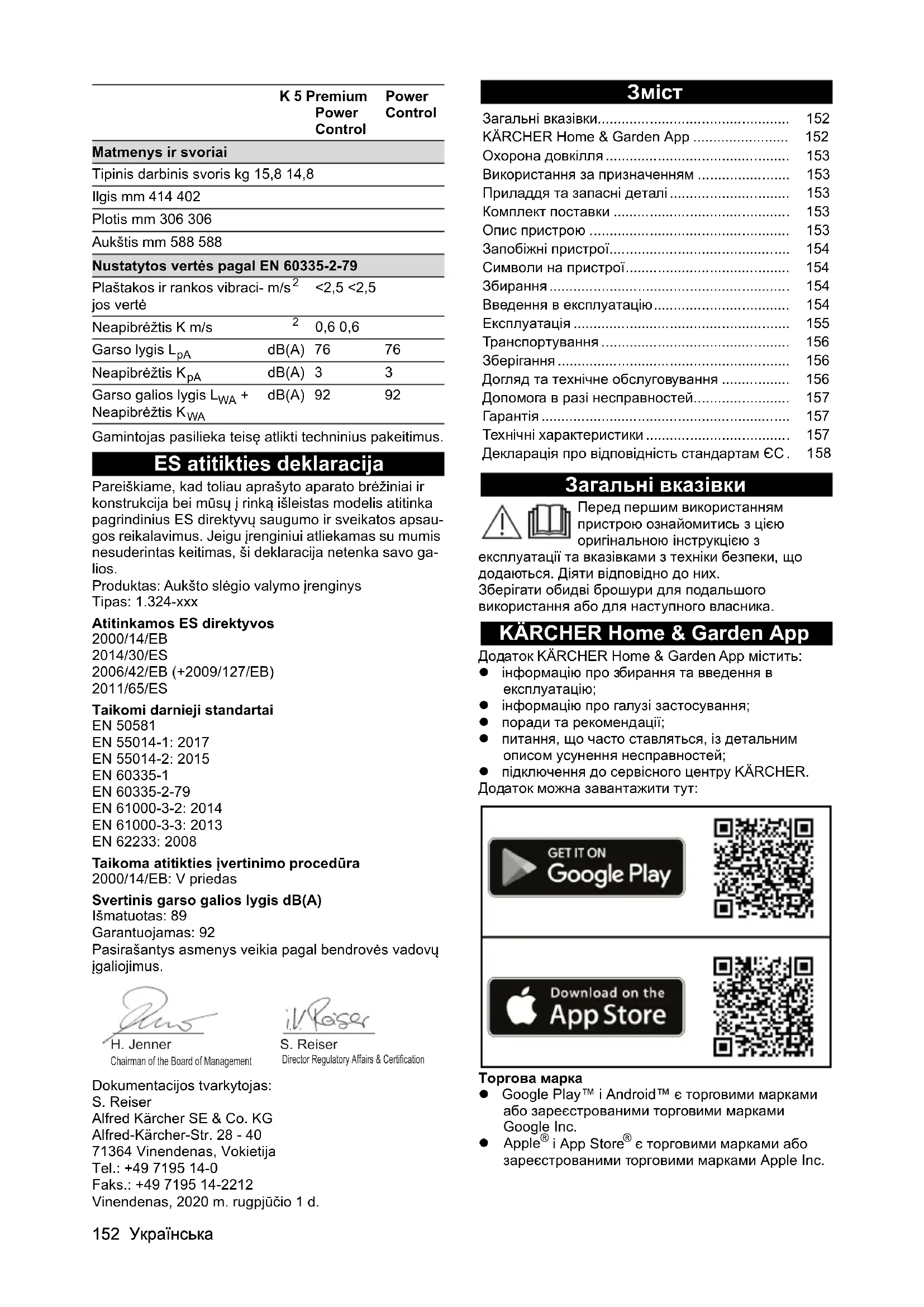 - dB(A) 92 92 K 5 Premium Power Control Power Control Chairman of the Board of Management Director Regulatory Affairs & Certification H. Jenner S. Reiser Загальні вказівки p. 152