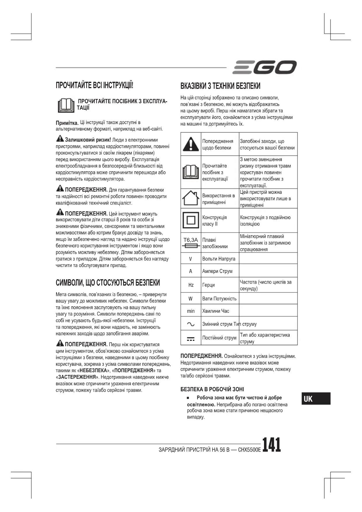 ПОСІБНИК КОРИСТУВАЧА CHX5500 EGO