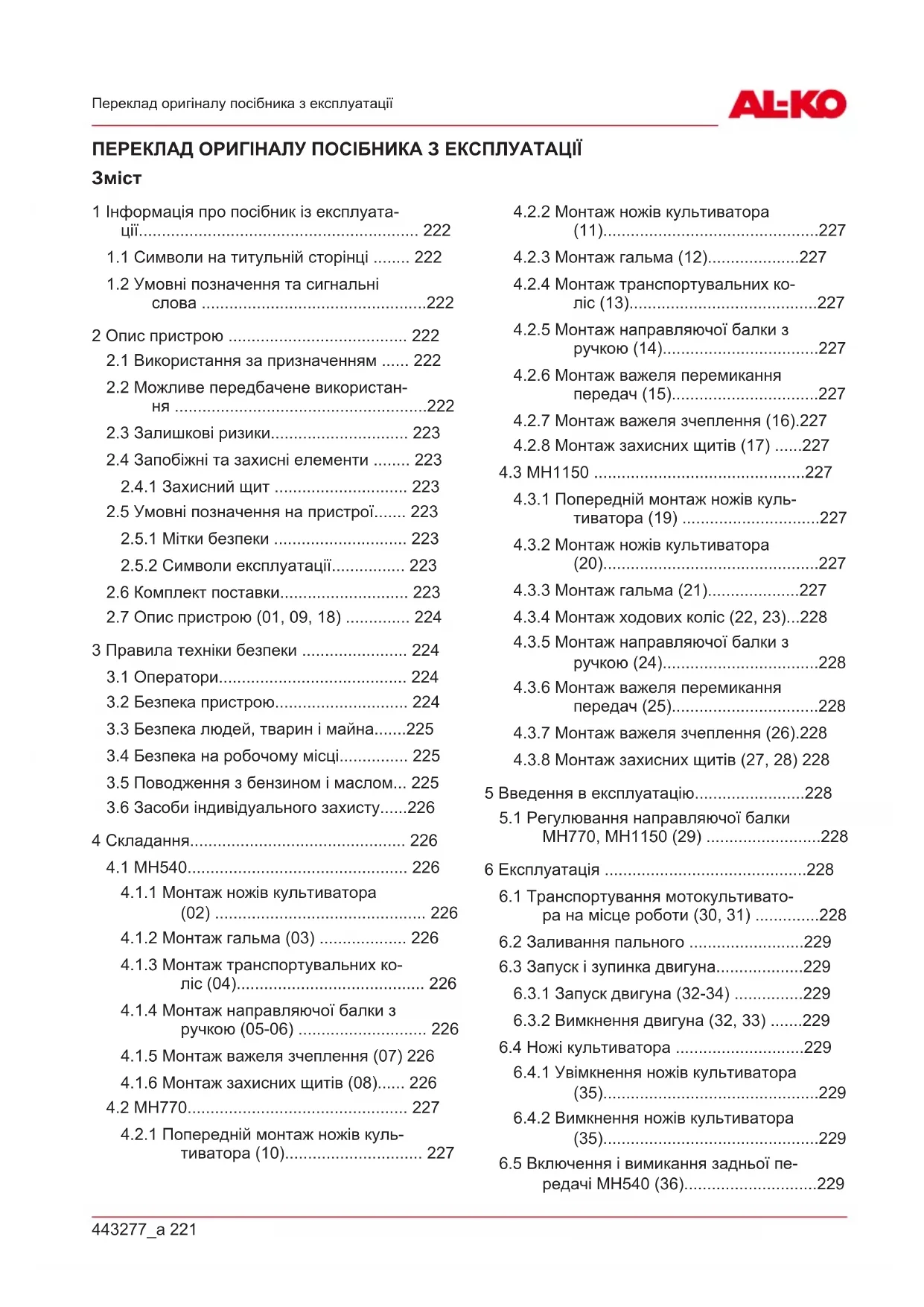 ПОСІБНИК КОРИСТУВАЧА MH 770 AL-KO