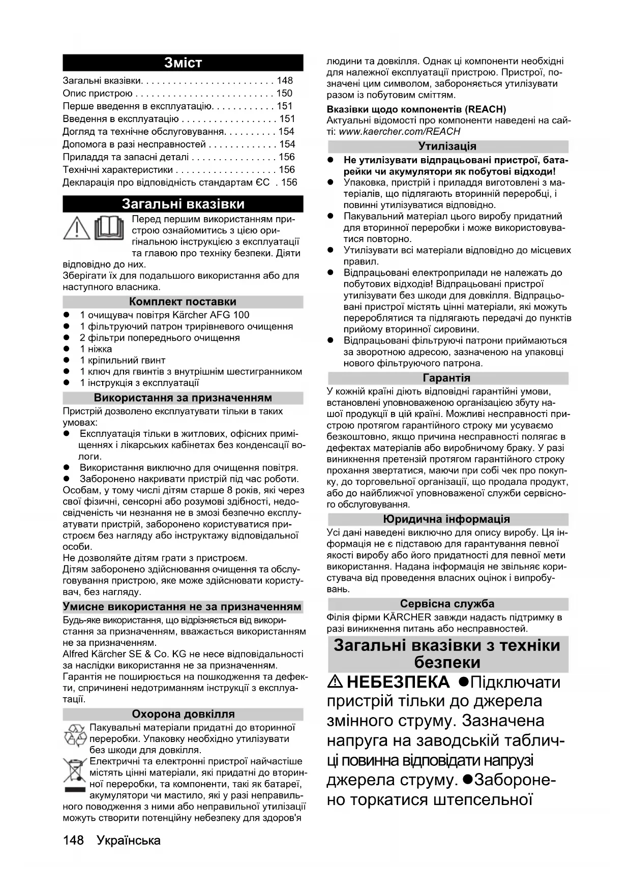 AFG 100 - Очищувач повітря Kärcher - Безкоштовний посібник користувача