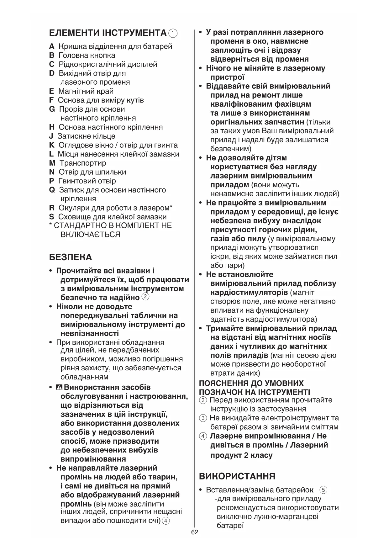 - Прочитайте всі вказівки і дотримуйтеся їх, щоб працювати з вимірювальним інструментом безпечно та надійно