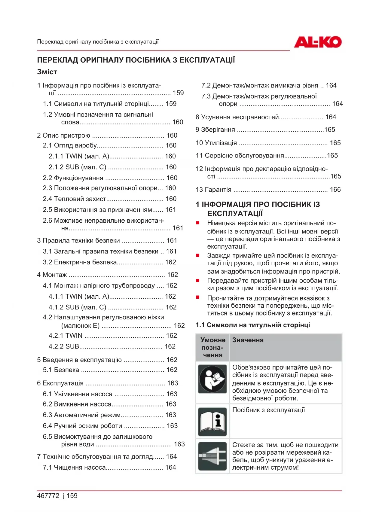 1 Інформація про посібник із експлуата- ції ............................................................. 159