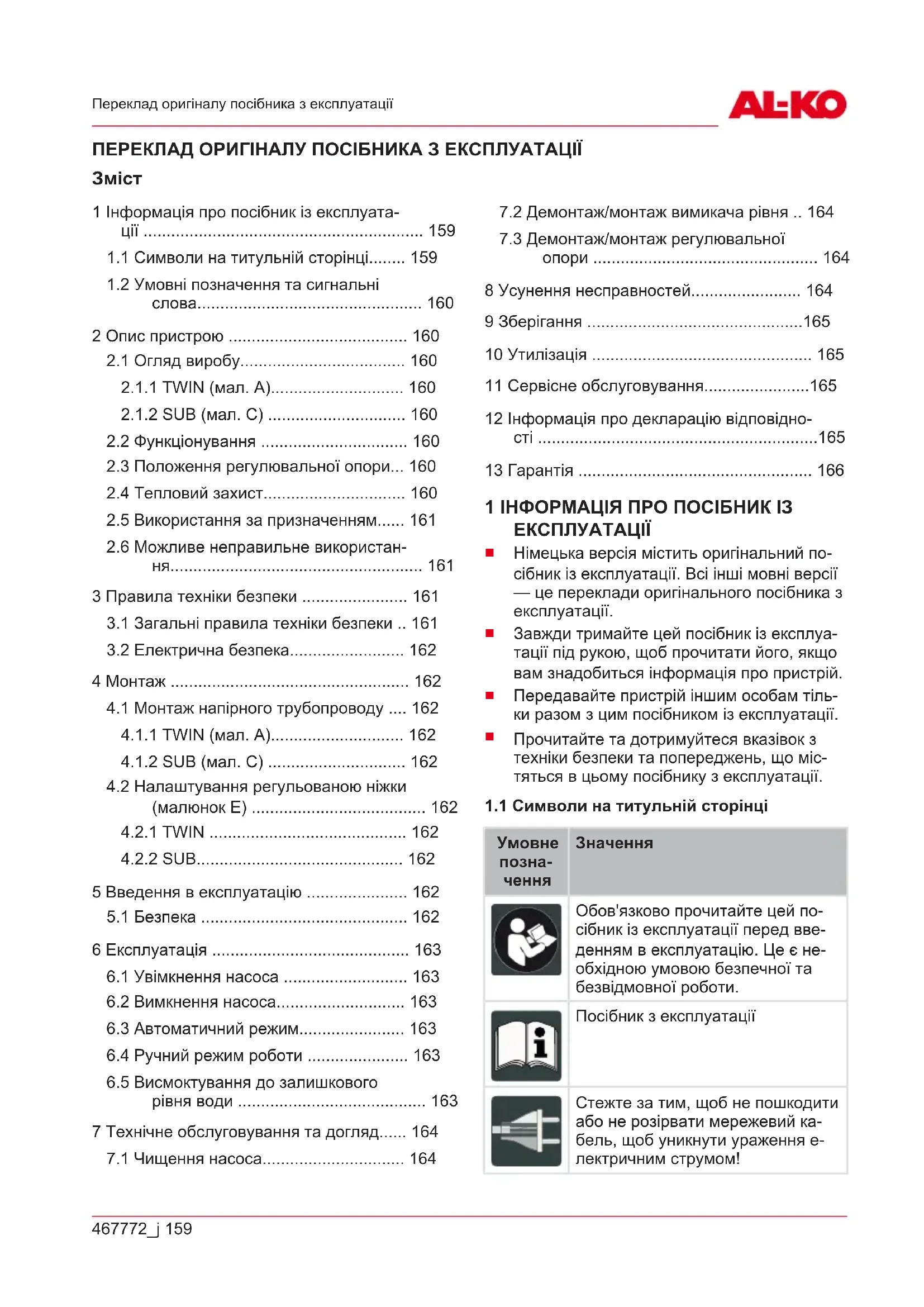1 Інформація про посібник із експлуата- ції ............................................................. 159