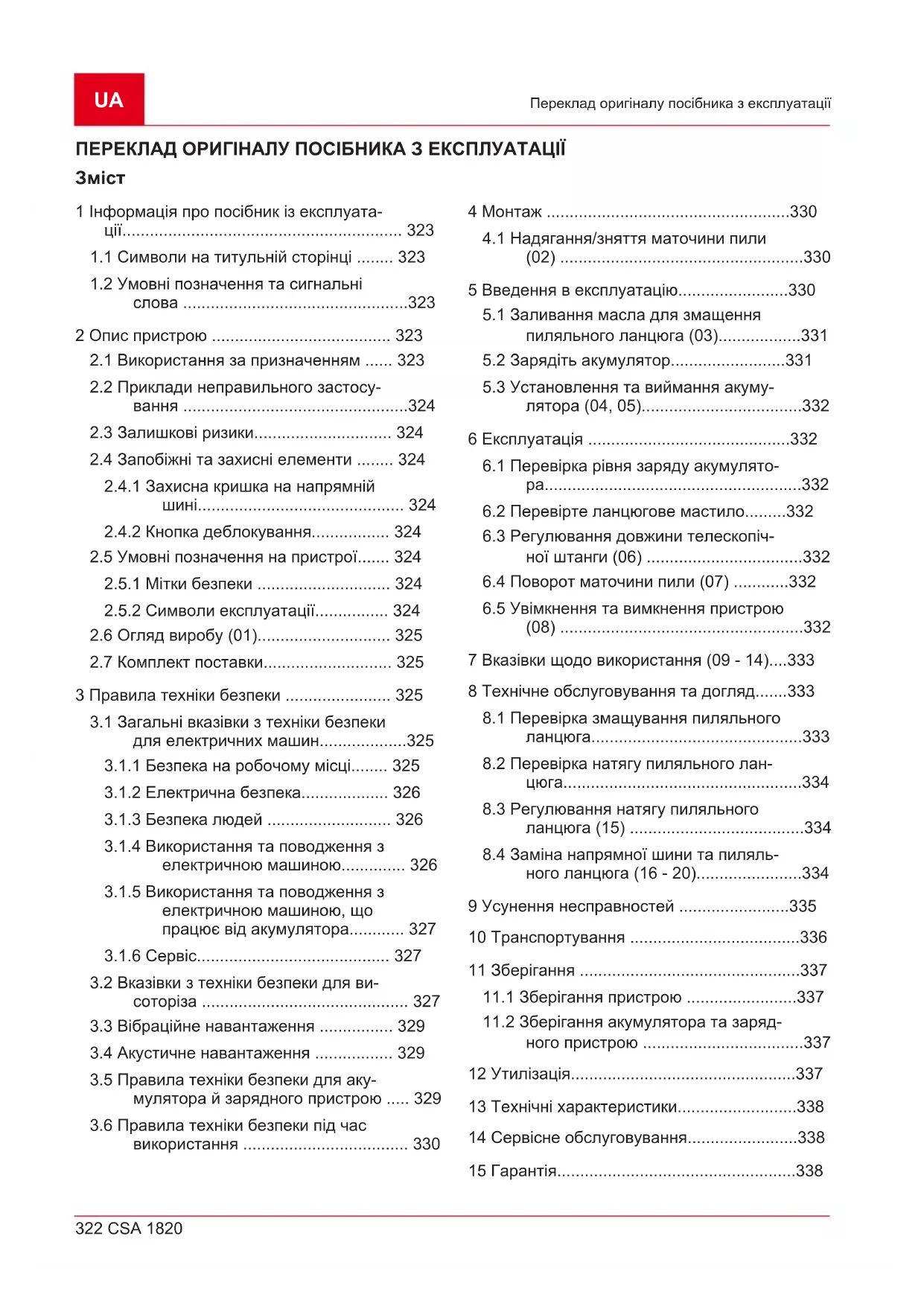 ПОСІБНИК КОРИСТУВАЧА 18 V CSA 1820 AL-KO