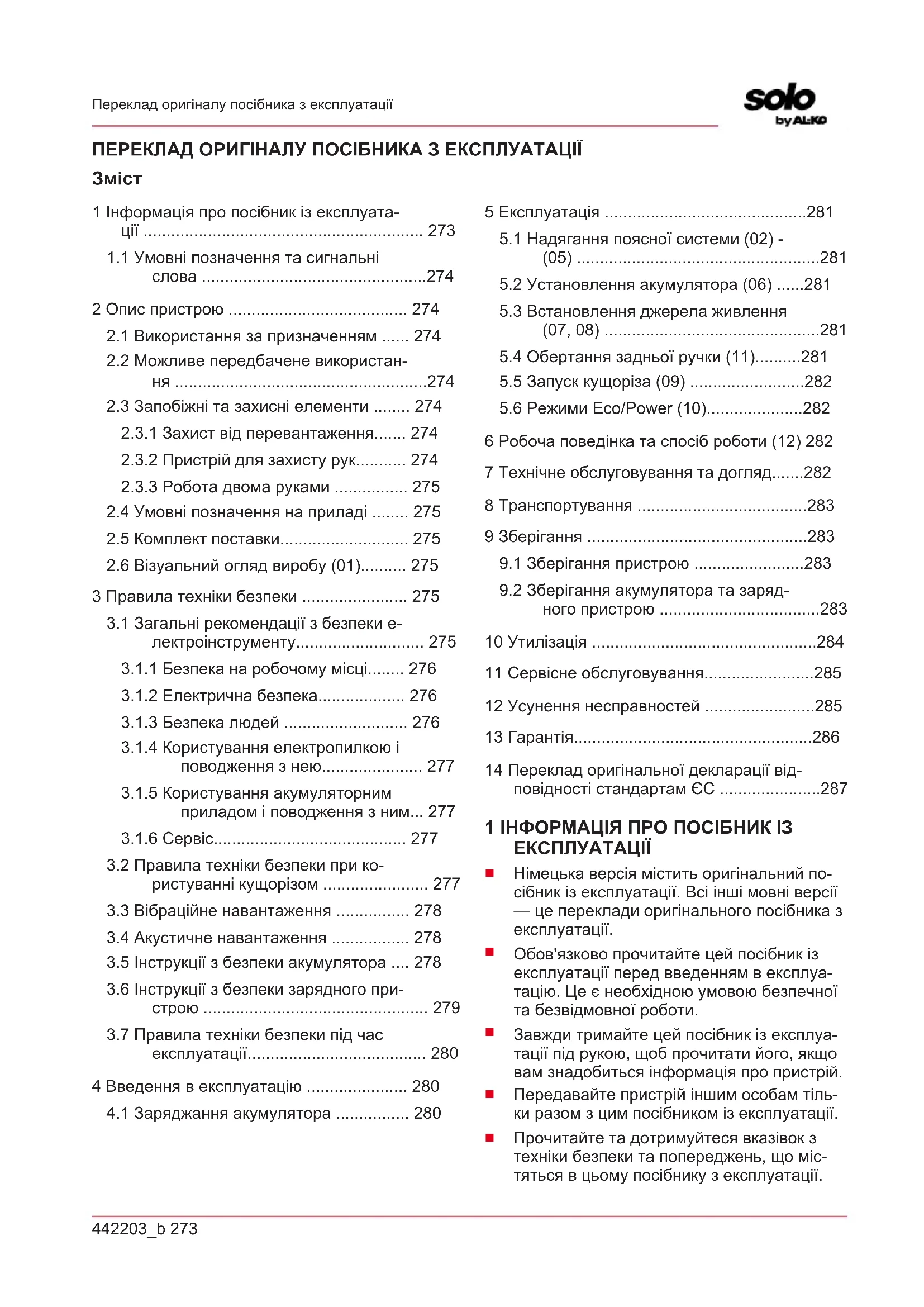 1 Інформація про посібник із експлуата- ції ............................................................. 273