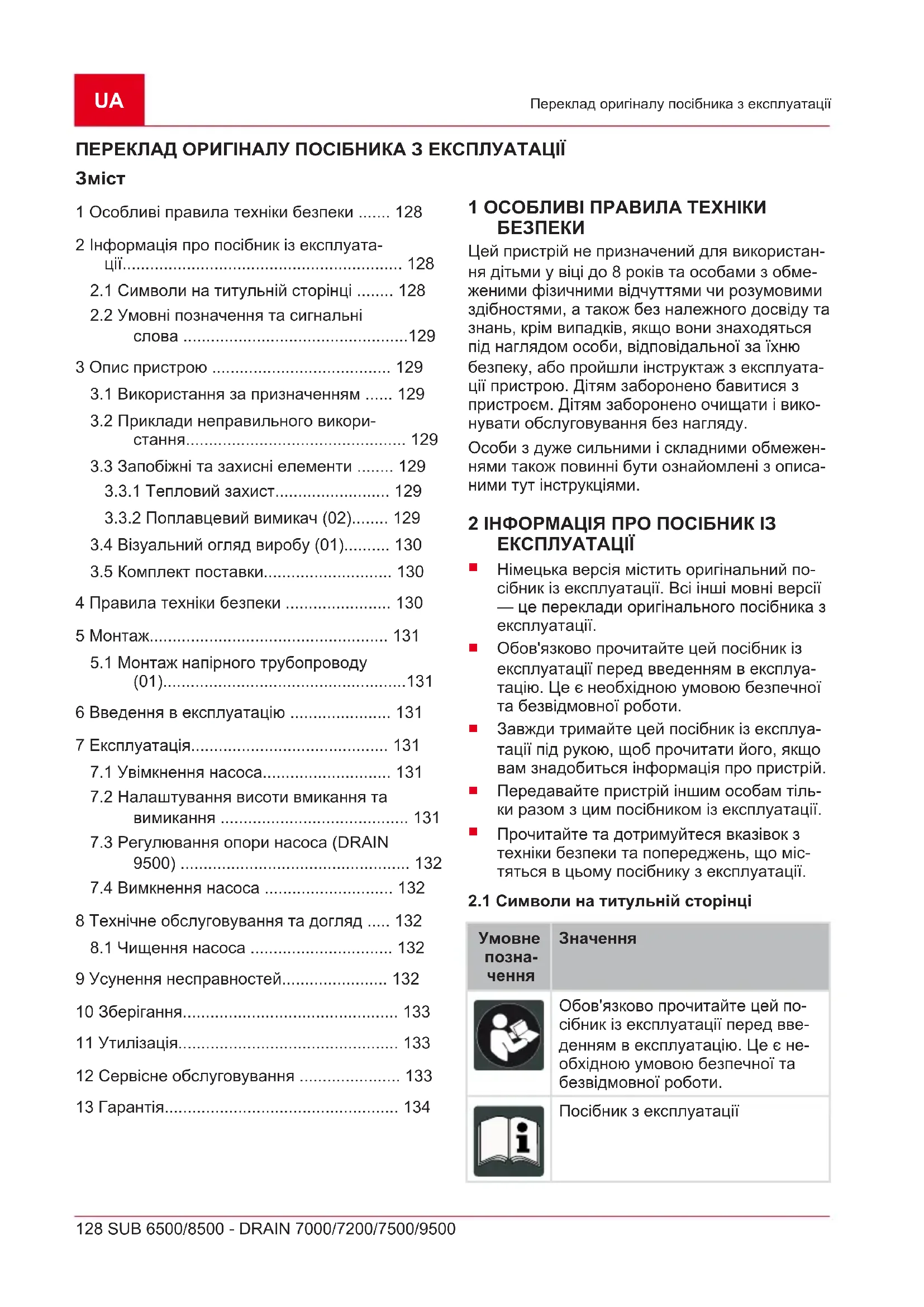1 Особливі правила техніки безпеки ....... 128 2 Інформація про посібник із експлуата- ції............................................................. 128