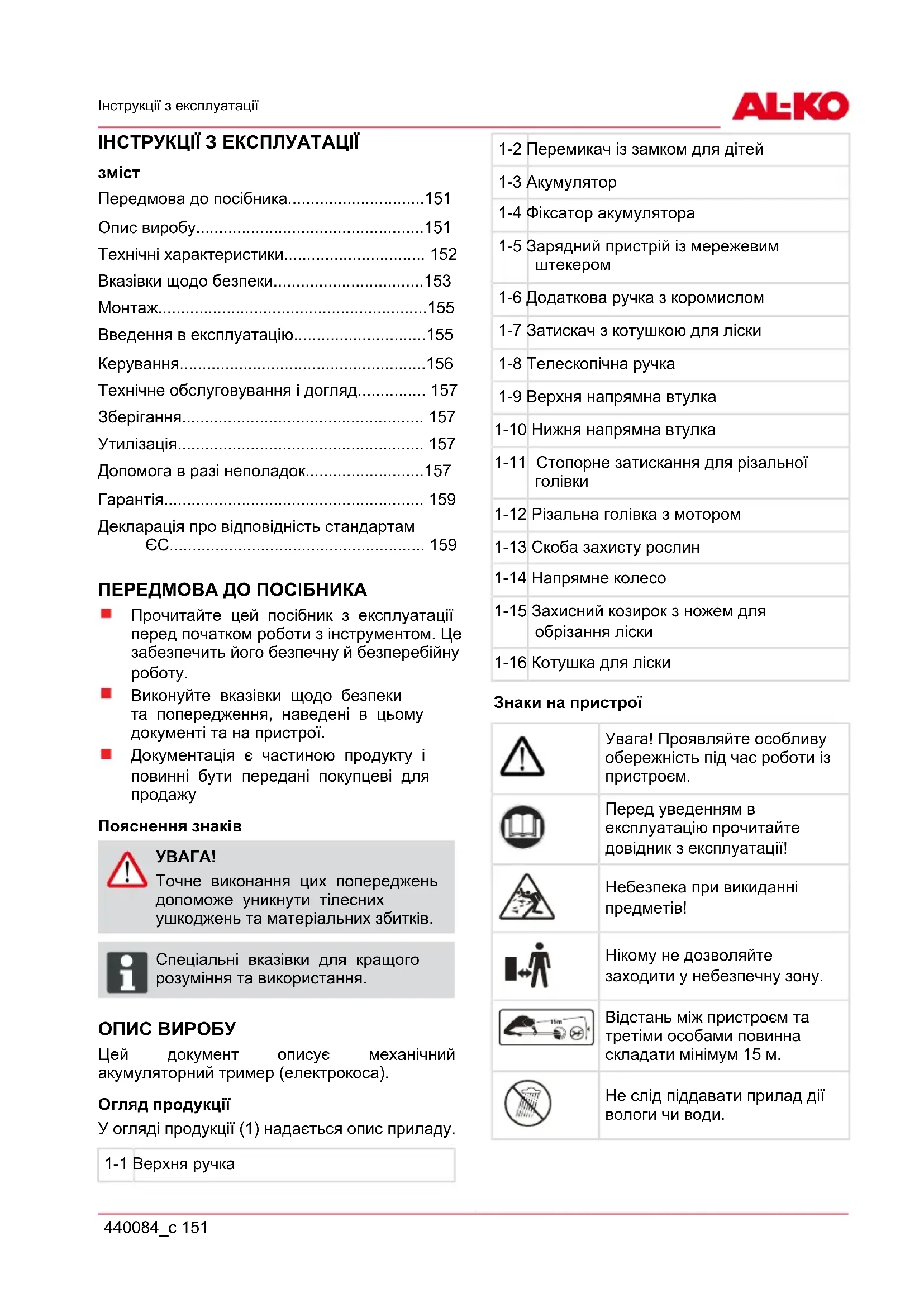 ПОСІБНИК КОРИСТУВАЧА GTLi 18V AL-KO