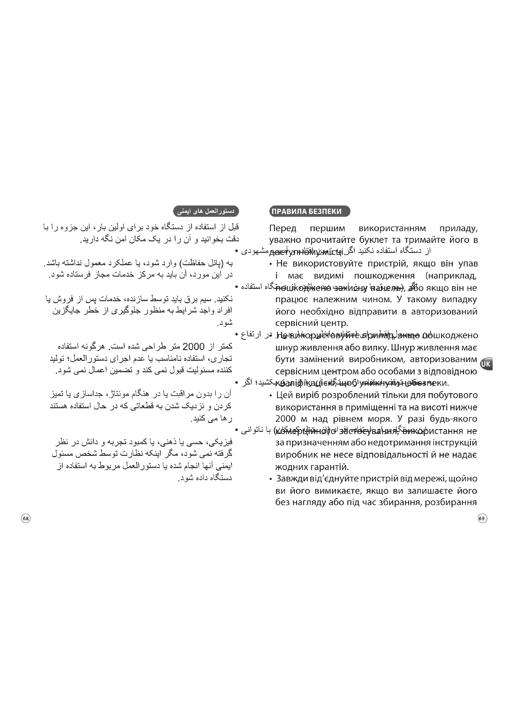 ПРАВИЛА БЕЗПЕКИ Перед першим використанням приладу, уважно прочитайте буклет та тримайте його в доступному місці.