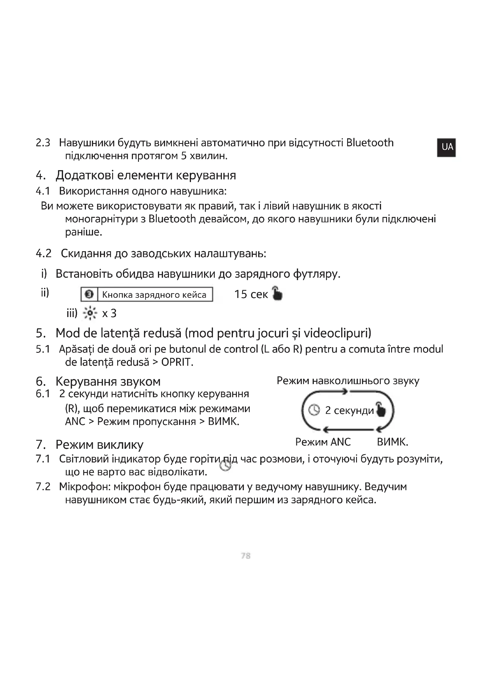 (R), щоб перемикатися між режимами ANC > Режим пропускання > ВИМК. Кнопка зарядного кейса 15 сек x 3