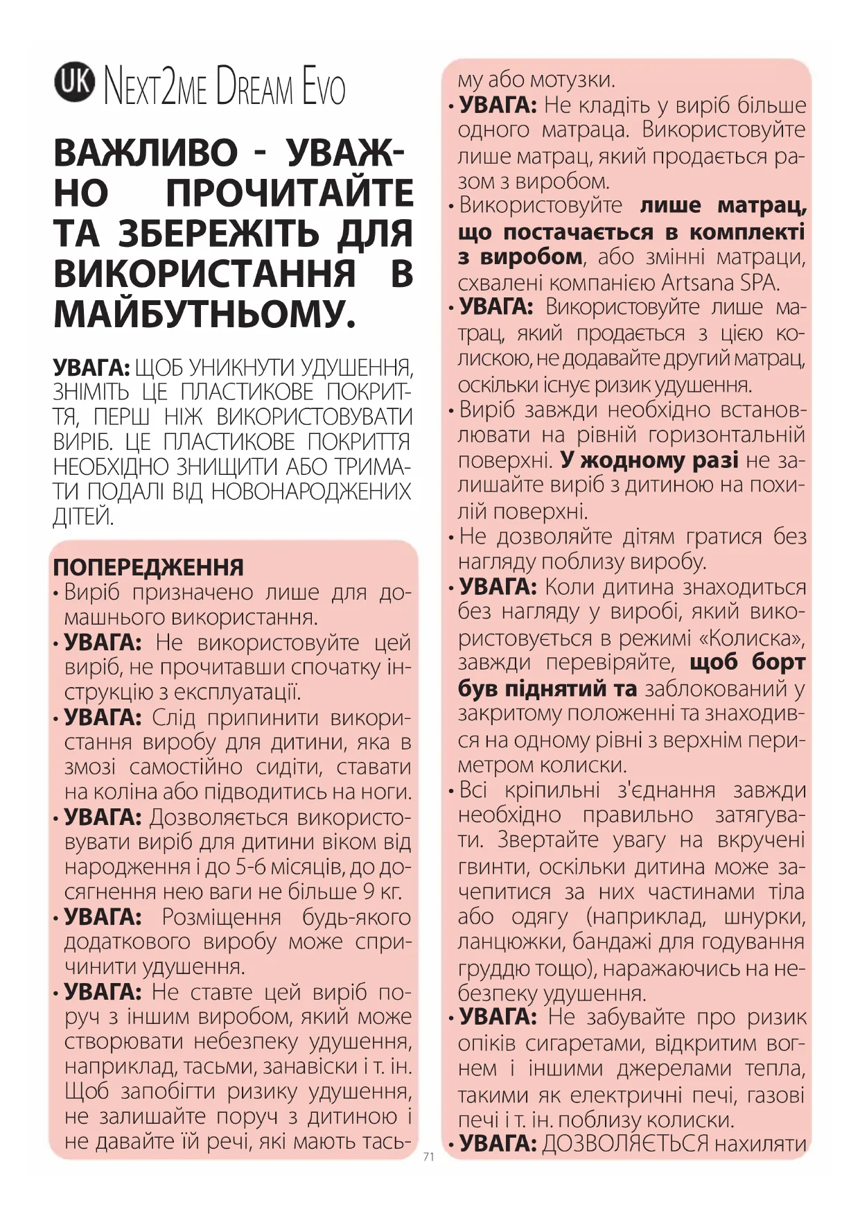 - AVENTISSEMENT: Ne pas utiliser plus d'un matelas dans le produit. Utiliser uniquement le matelas fourni avec le produit. Utiliseréxclusivement le matelas fourni avec le produit ou déventuels matelas de rechange approvés par Artsana S. p. A.