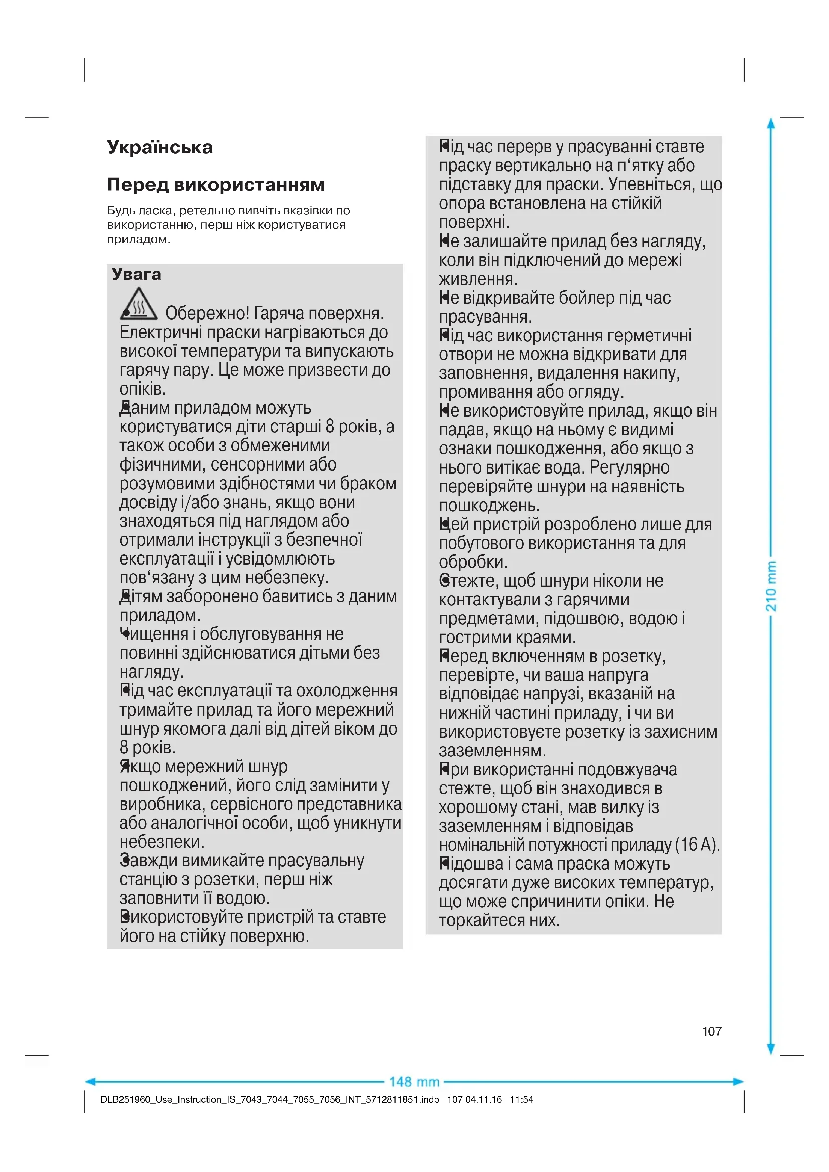 DLB251960_Use_Instruction_IS_7043_7044_7055_7056_INT_5712811851.indb 106 04.11.16 11:54Українська Перед використанням Будь ласка, ретельно вивчіть вказівки по використанню, перш ніж користуватися